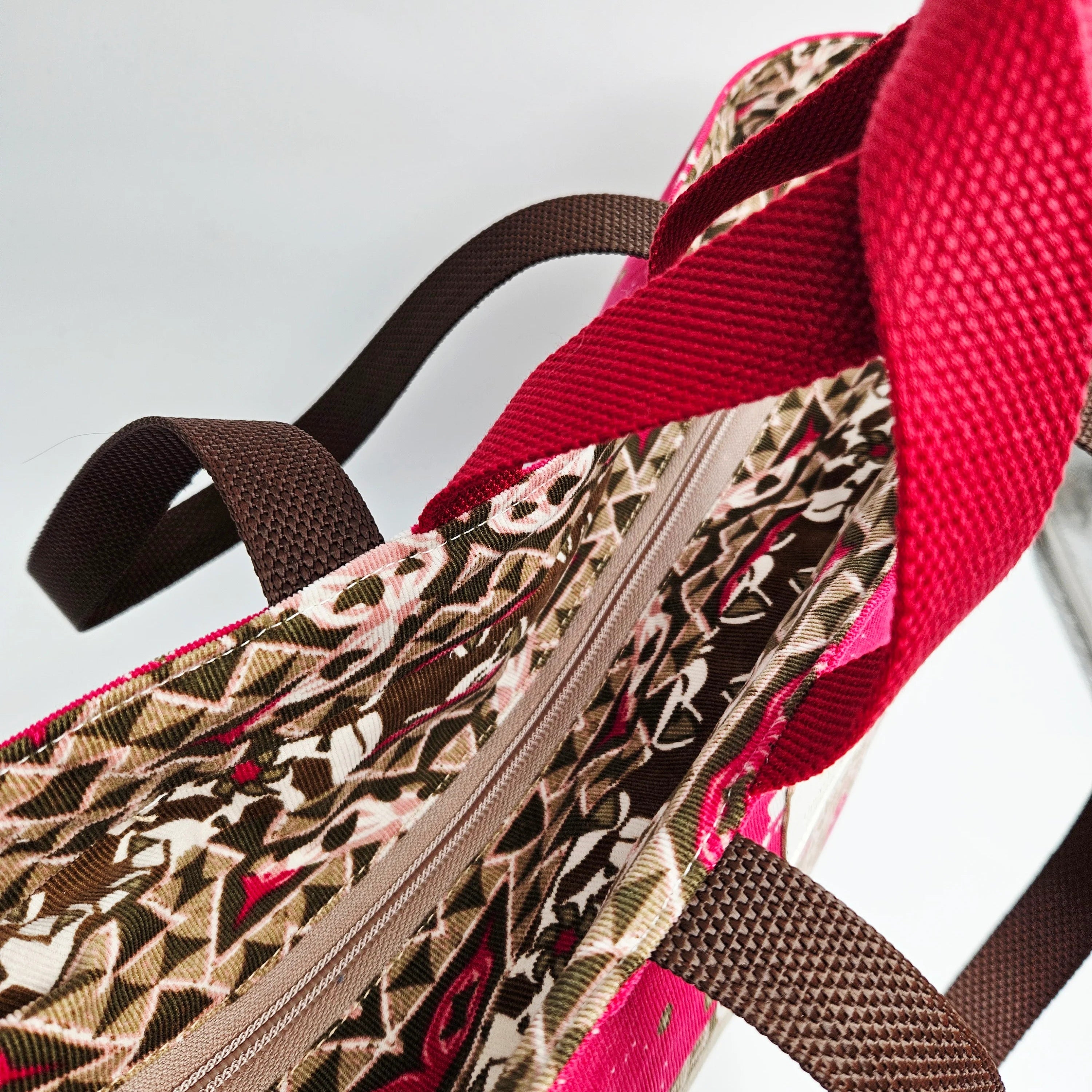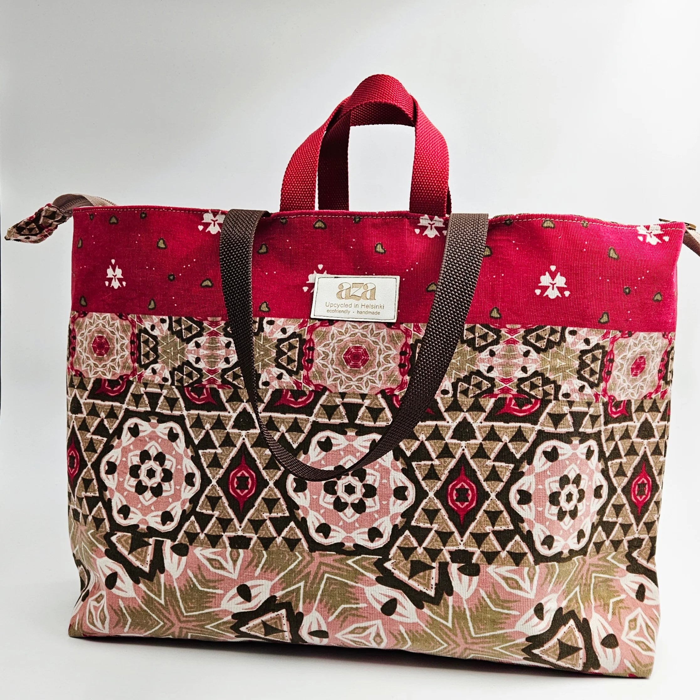 Aza Ecotiquen tilava vetoketjullinen Tote Bag on kierrätetyistä materiaaleista käsin valmistettu kassi arkeen, töihin ja viikonloppureissuun!