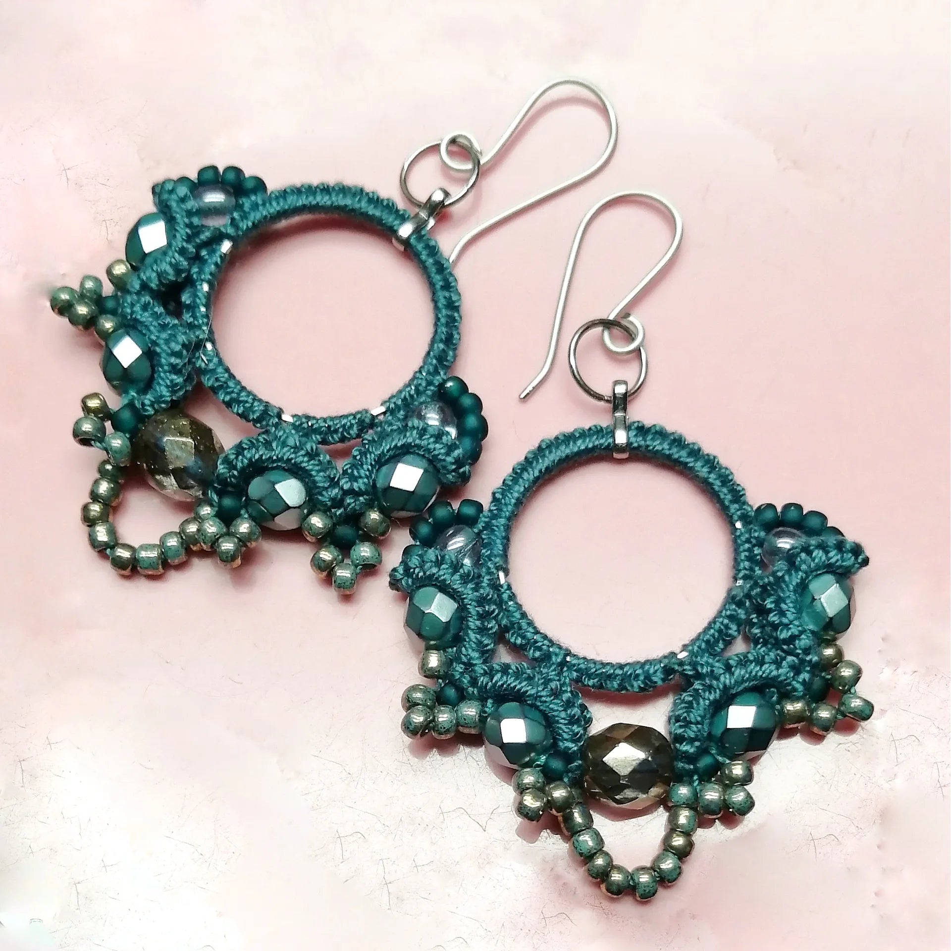 Cirsiumin Maitolaiturin Prinsessan Uudet Vaatteet -korvakorut säihkyvät ainutlaatuista kädentaitoa ja frivolitepitsin rokahtavaa ilosanomaa!