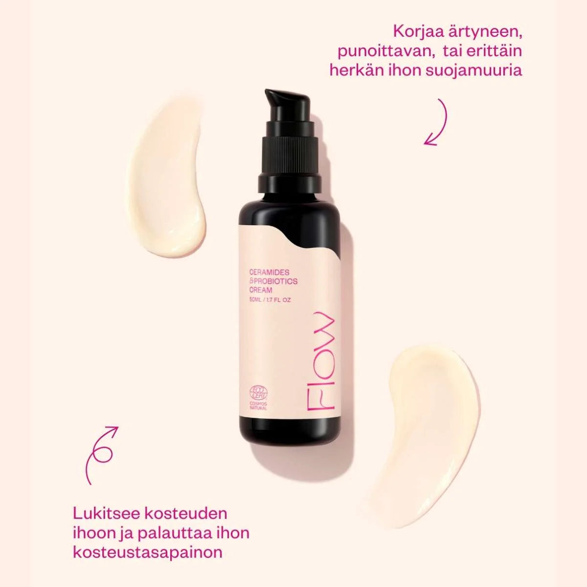 LOV!Tin kauppiaan suosikki, Flow Cosmeticsin kotimainen Ceramides & Probiotics Cream on suojamuuria vahvistava kasvovoide herkälle iholle!