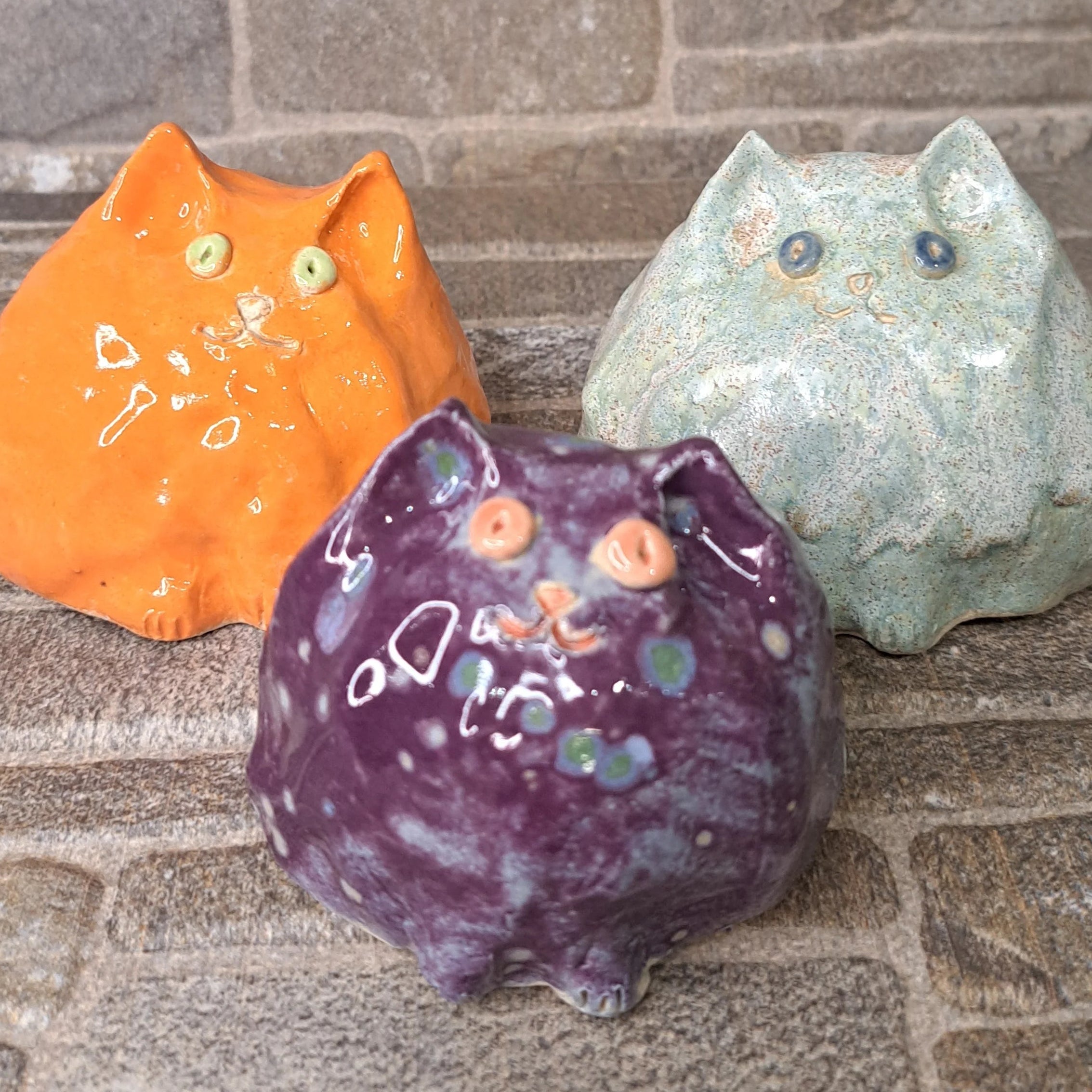 Korkeapolttoinen keramiikka tekee kissoista pitkäikäisiä ja laadukkaita, ja niiden eläväinen värimaailma piristää hyllyä, työpöytää tai lahjapakettia kertaheitolla. Ihana lahja kenelle tahansa kissaihmiselle tai sisustajalle, joka arvostaa käsityötä ja pieniä ilon hetkiä.