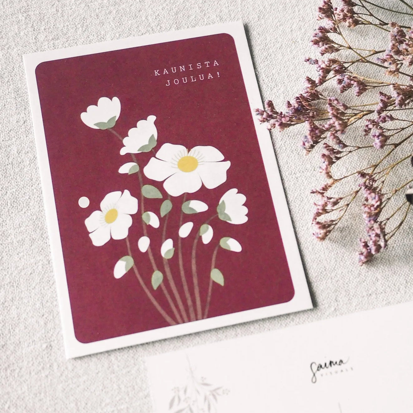 Ihana tapa lähettää jouluiloa! Saima Visualsin herkän suloinen kuvitus ja lämmin jouluntoivotus tekevät tästä kortista lahjan jo itsessään.