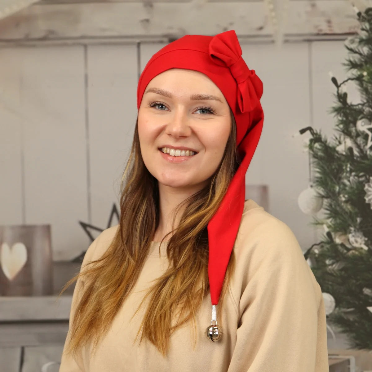Little Mayan perinteisen punainen tonttulakki on valmistettu laadukkaasta trikookankaasta ja viimeistelty kauniilla rusetilla ja kulkusella!