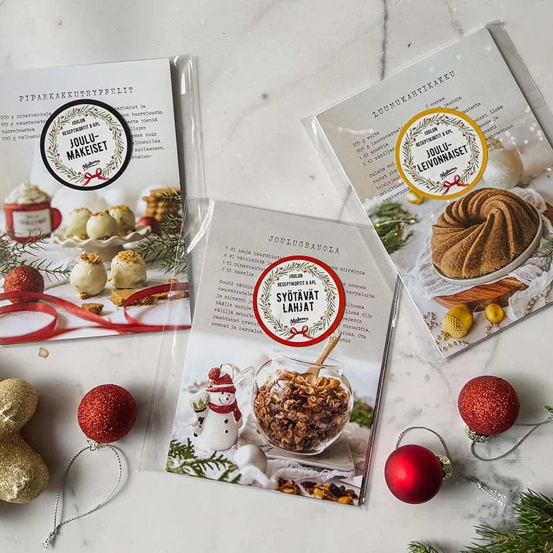 Makeaan reseptikorttipakat: 8 helppoa syötävän lahjan, joulumakeisen tai joululeivonnaisen reseptiä yhdessä paketissa. Painettu Suomessa. Tutustu ja tilaa LOV!Tilta