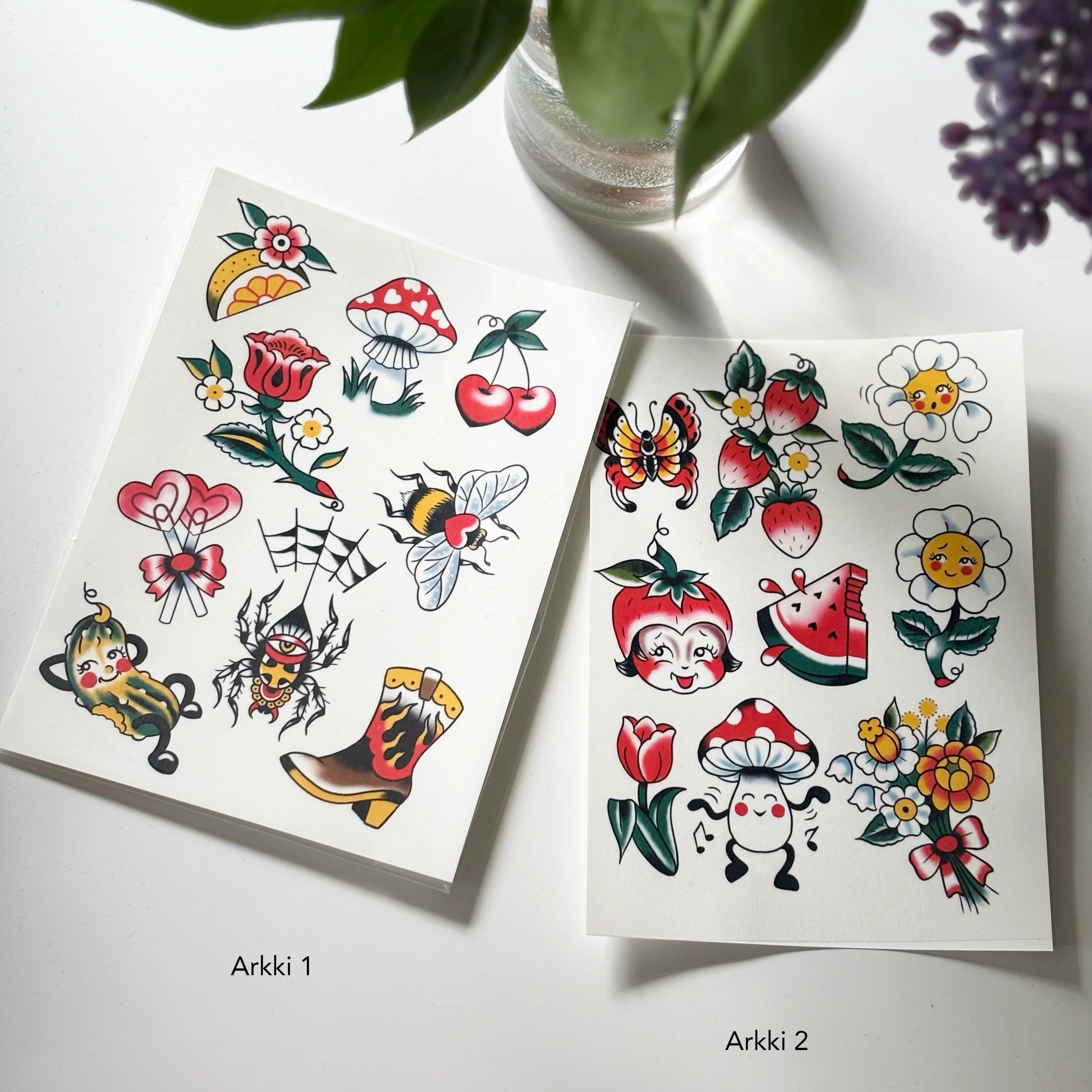 Bad Idea Designin retrohenkiset siirtokuvatatuoinnit. Helppo ja hauska tapa koristaa iho ilman neuloja. Täydellinen lahjaksi ja festarilookiin! Tilaa LOV!Tilta!