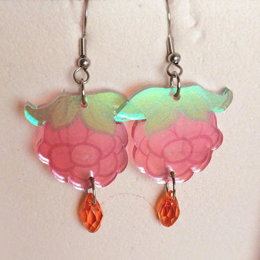 Katjataiteen herkulliset Vadelma -korvakorut on kevyen leikkisät kotimaiset korvikset kauniilla koristehelmellä!