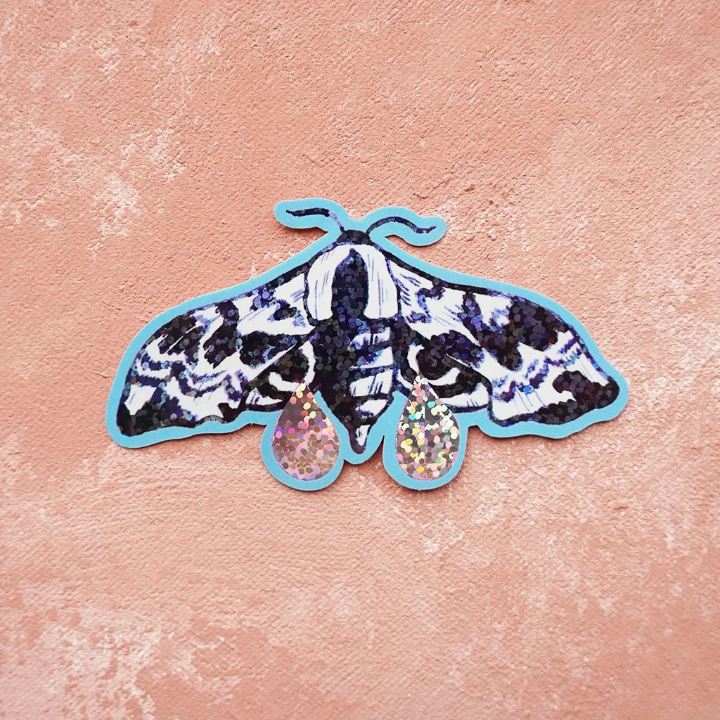 Sinisilmäkiitäjä holografisin kyynelefektein, 8,5 x 4,7 cm