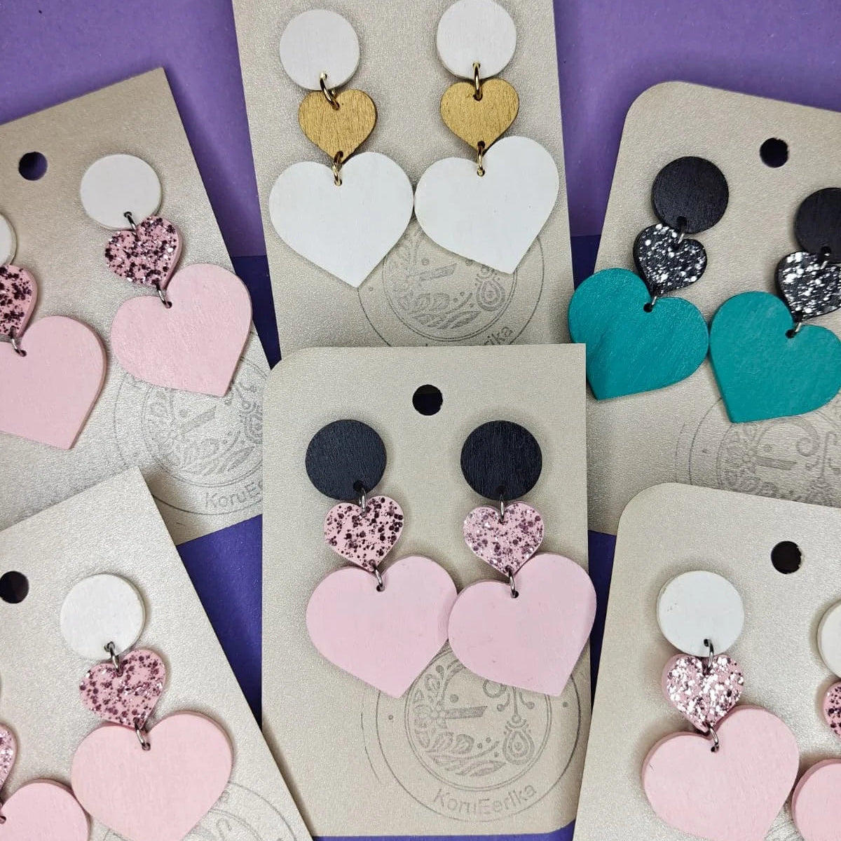 Korut valmistetaan suomalaisesta koivuvanerista ja maalataan käsin, joten jokainen pari on oma uniikki versionsa. Metalliosat ovat kirurginterästä, mikä tekee koruista turvalliset ja mukavat myös herkkäihoisille. Hertta on myös suosittu lahjavalinta – suloinen, kepeä ja helposti yhdisteltävä.