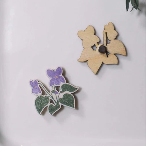 Saima Visualsin kotimaisesta koivuvanerista valmistettu magneetti tuo iloa sisustukseen ja päivään! Herkän kaunis kukkamagneetti on kaunis lisä jääkaapin oveen, musititauluun tai vaikkapa lahjaksi.