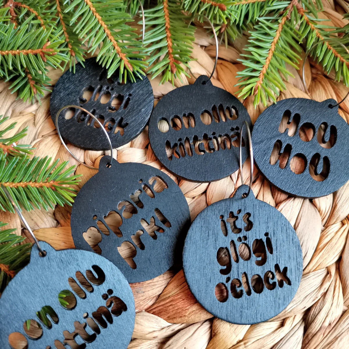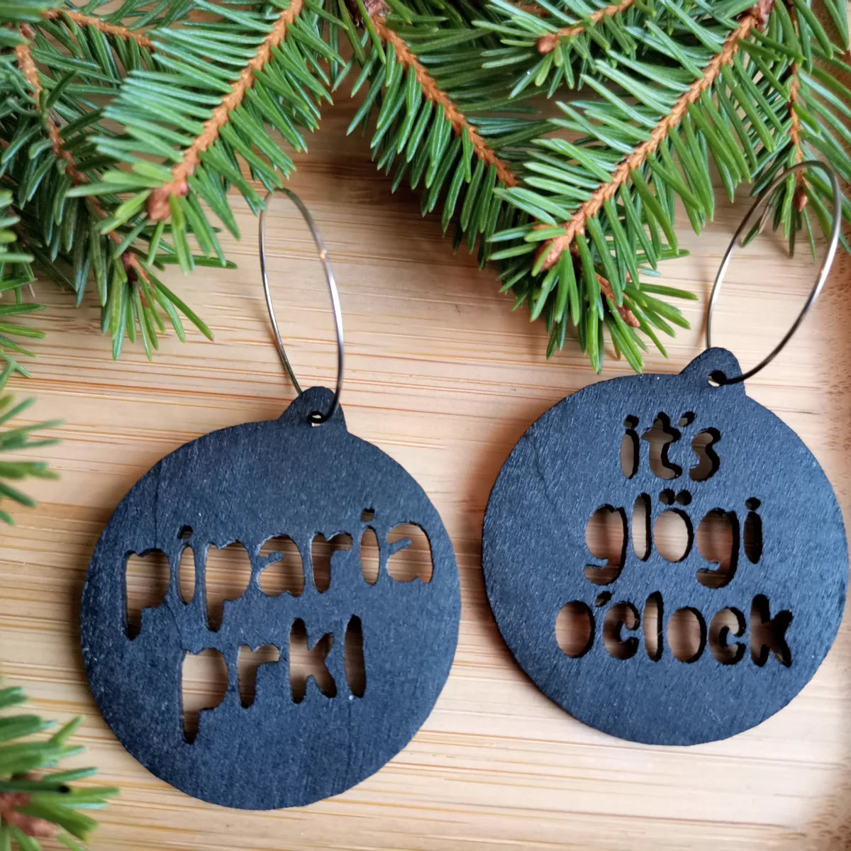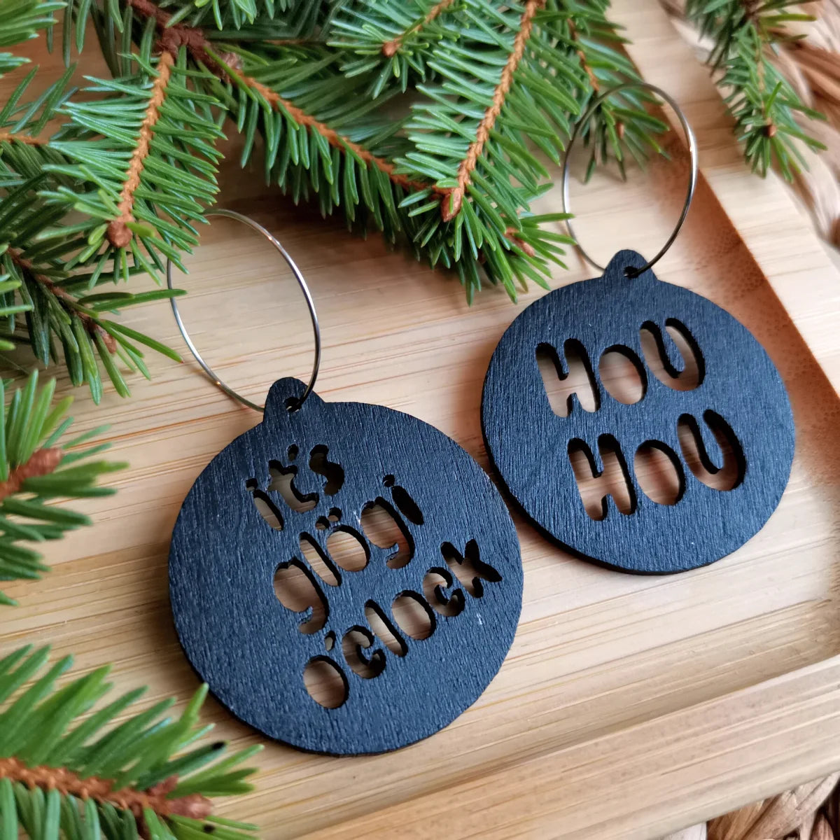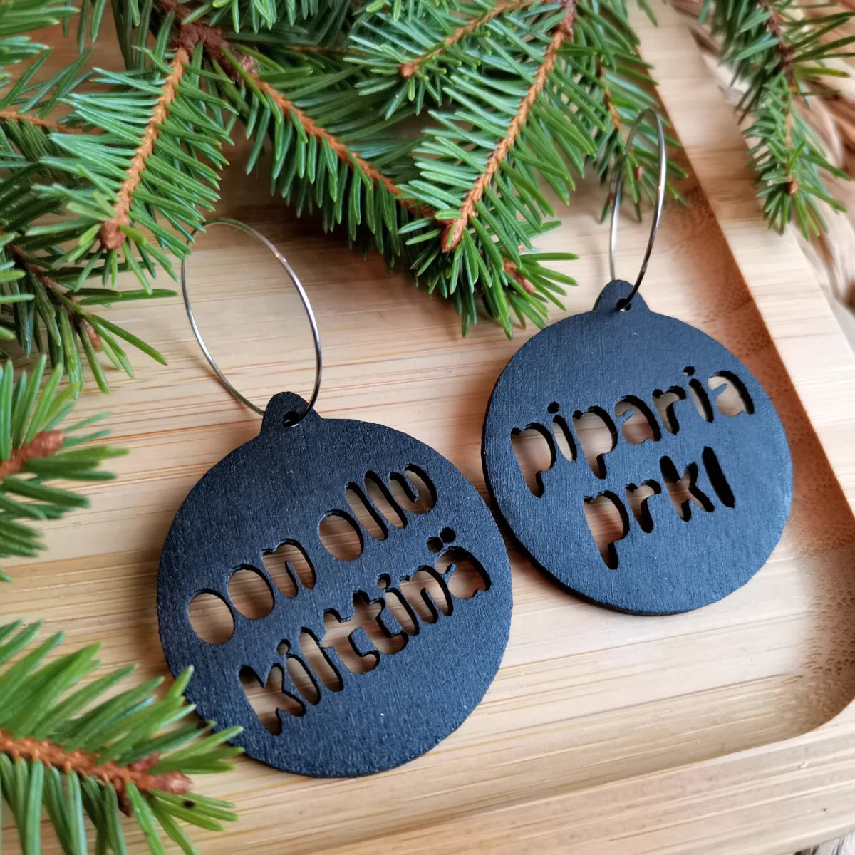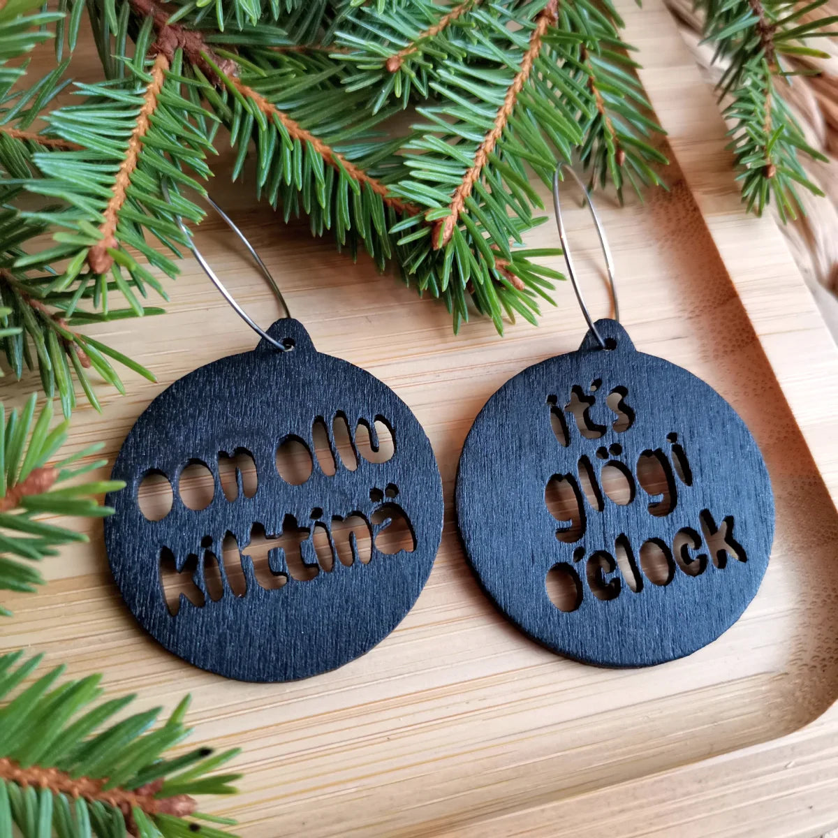 Jos joulukuusi saa koristeet, miksei sinäkin? ILONEn koivuvaneriset mustat statement-korvakorut tuovat juhlaan ripauksen huumoria, itsevarmuutta ja tyyliä. Nämä näyttävät joulupallokorvikset ovat täydellinen sekoitus rohkeaa designia ja leikkisyyttä – juuri sitä, mitä iloinen joulumieli kaipaa.