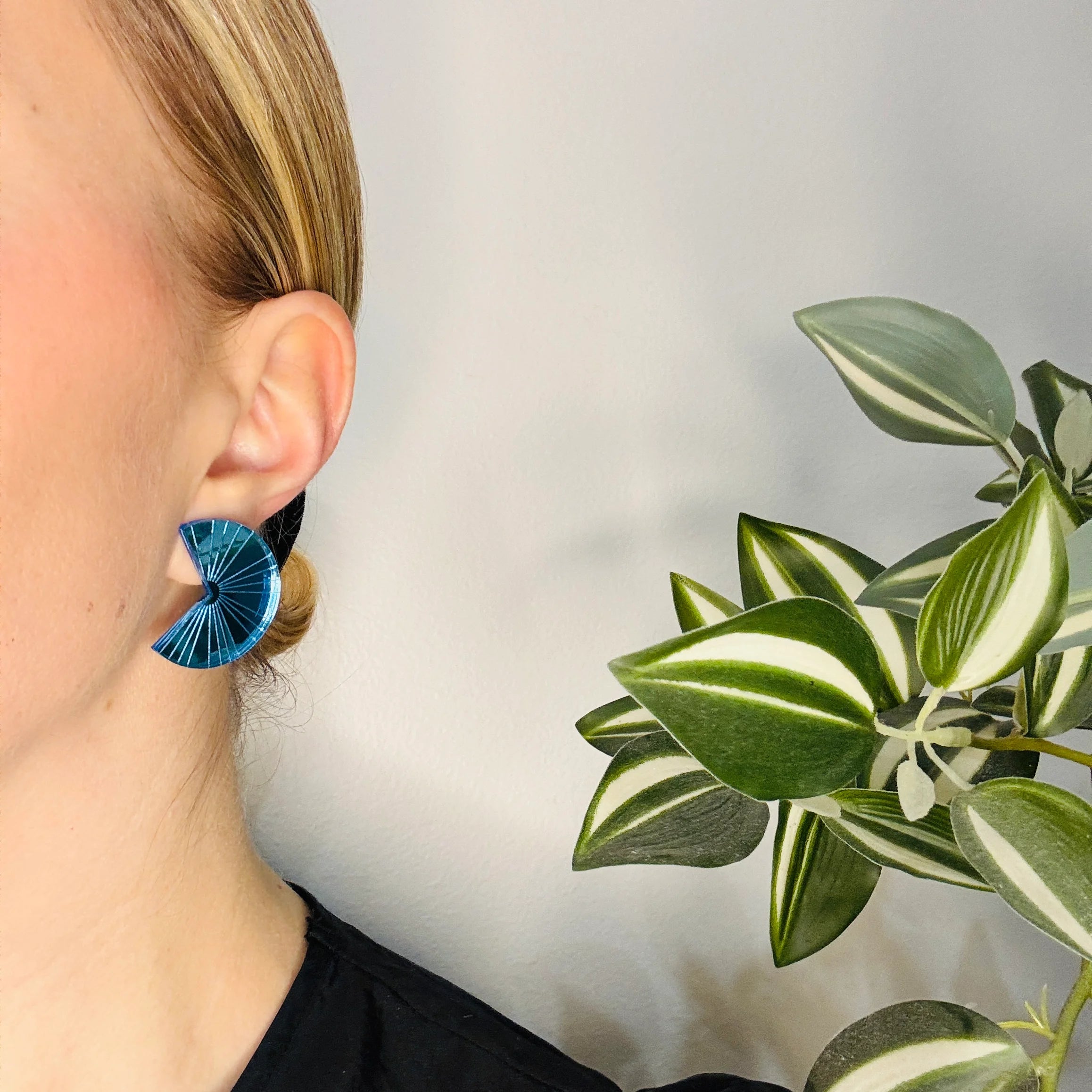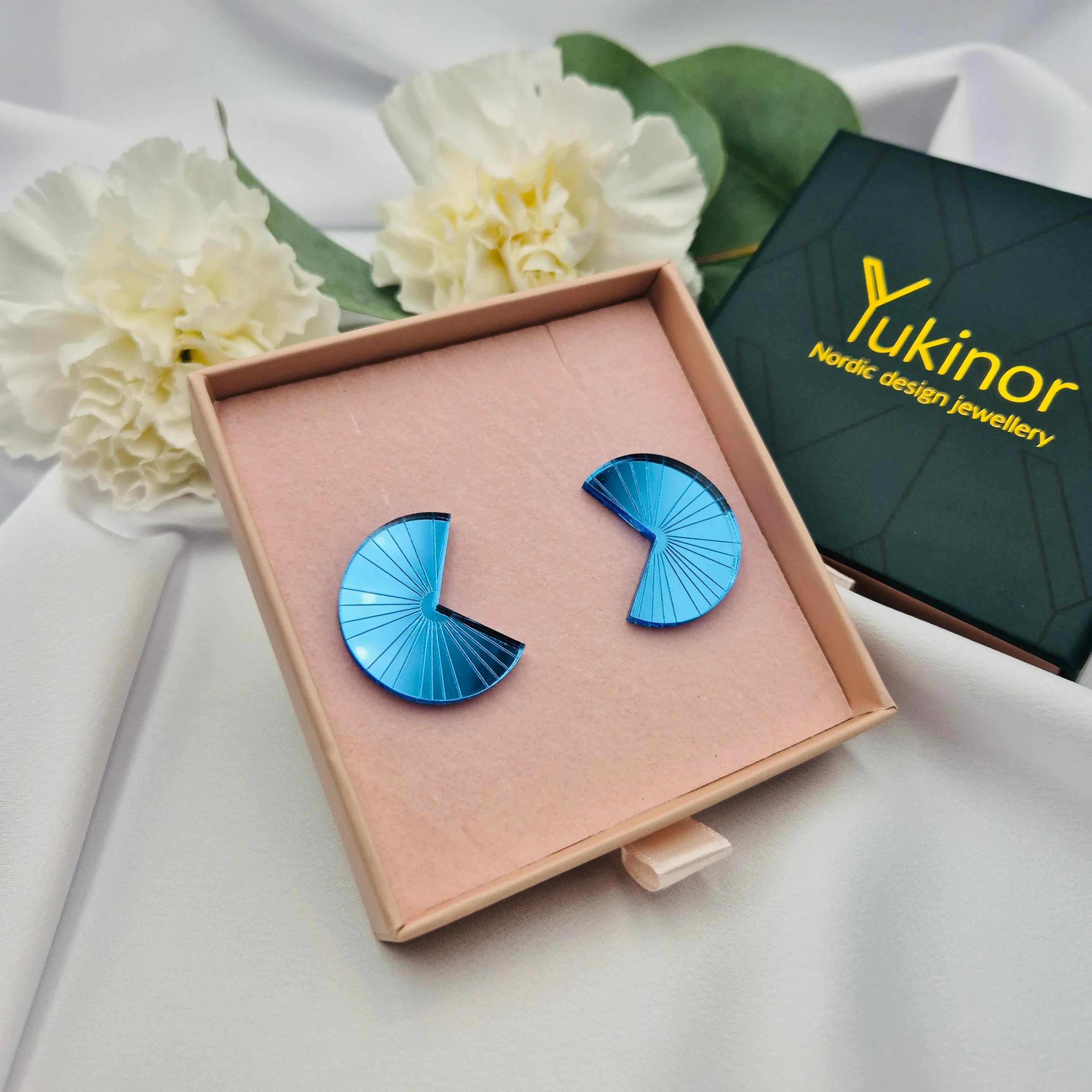 Yukinorin näyttävät, mutta kevyet Kata -nappikorvakorut on kaunis yhdistelmä peiliakryyliä ja graafista muotoilua!
