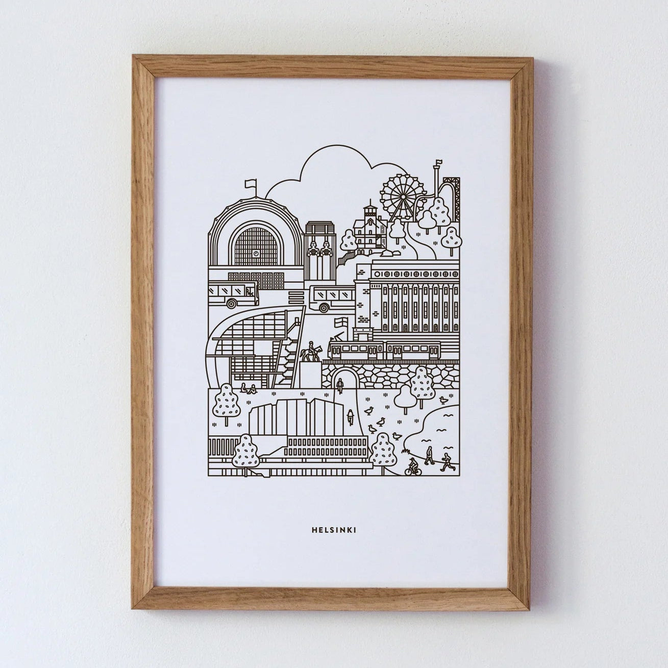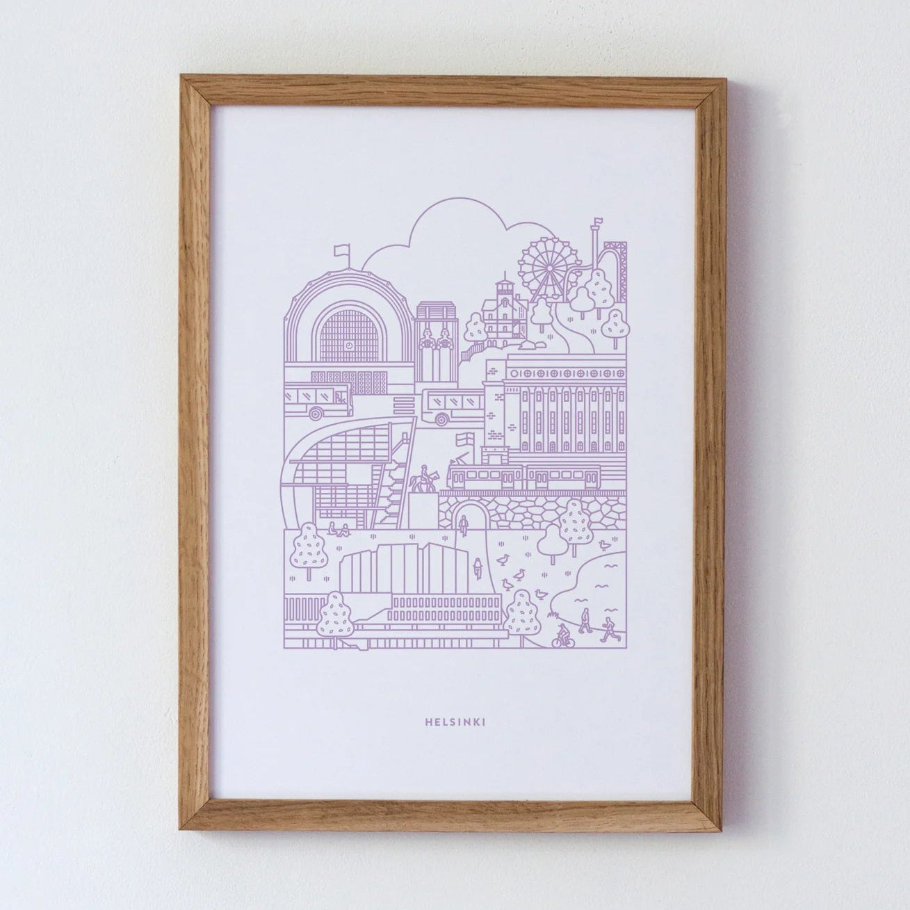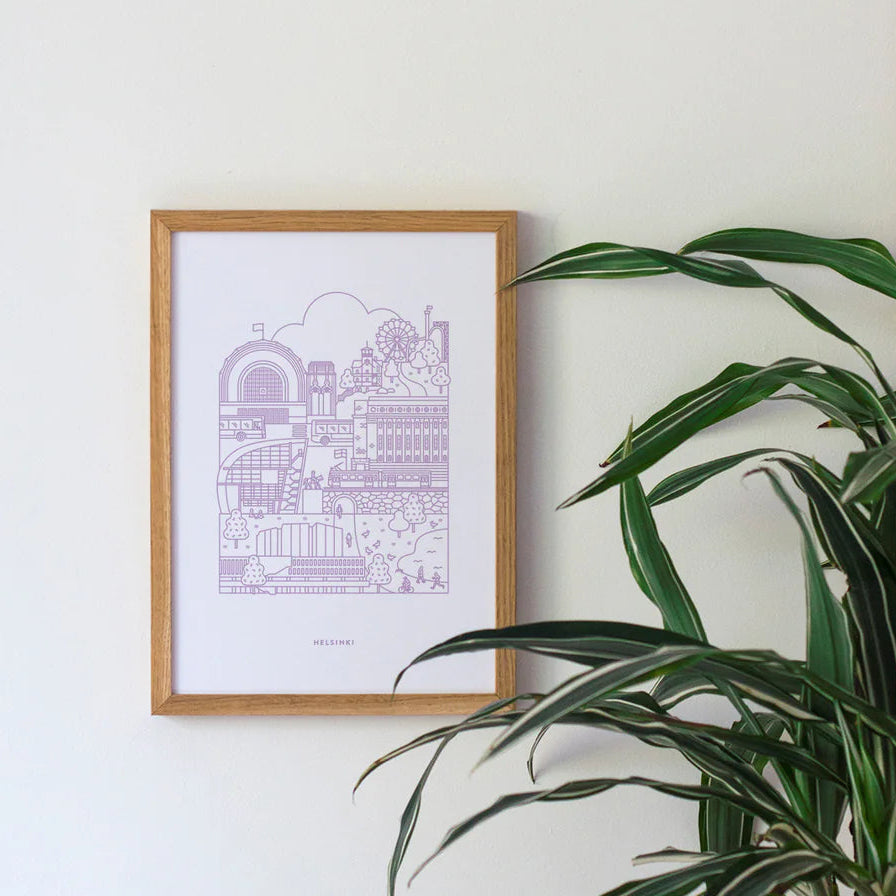 Juliste on painettu Suomessa ympäristöystävälliselle paperille, ja sen ajaton tyyli sopii täydellisesti niin kotiin, toimistoon kuin lahjaksi Helsinki-fanille.