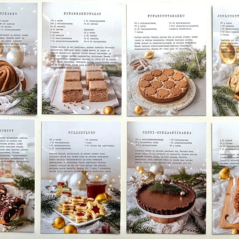 Makeaan kauniisti kuvitetuilla reseptikorteilla annat lahjaksi makuelämyksen!