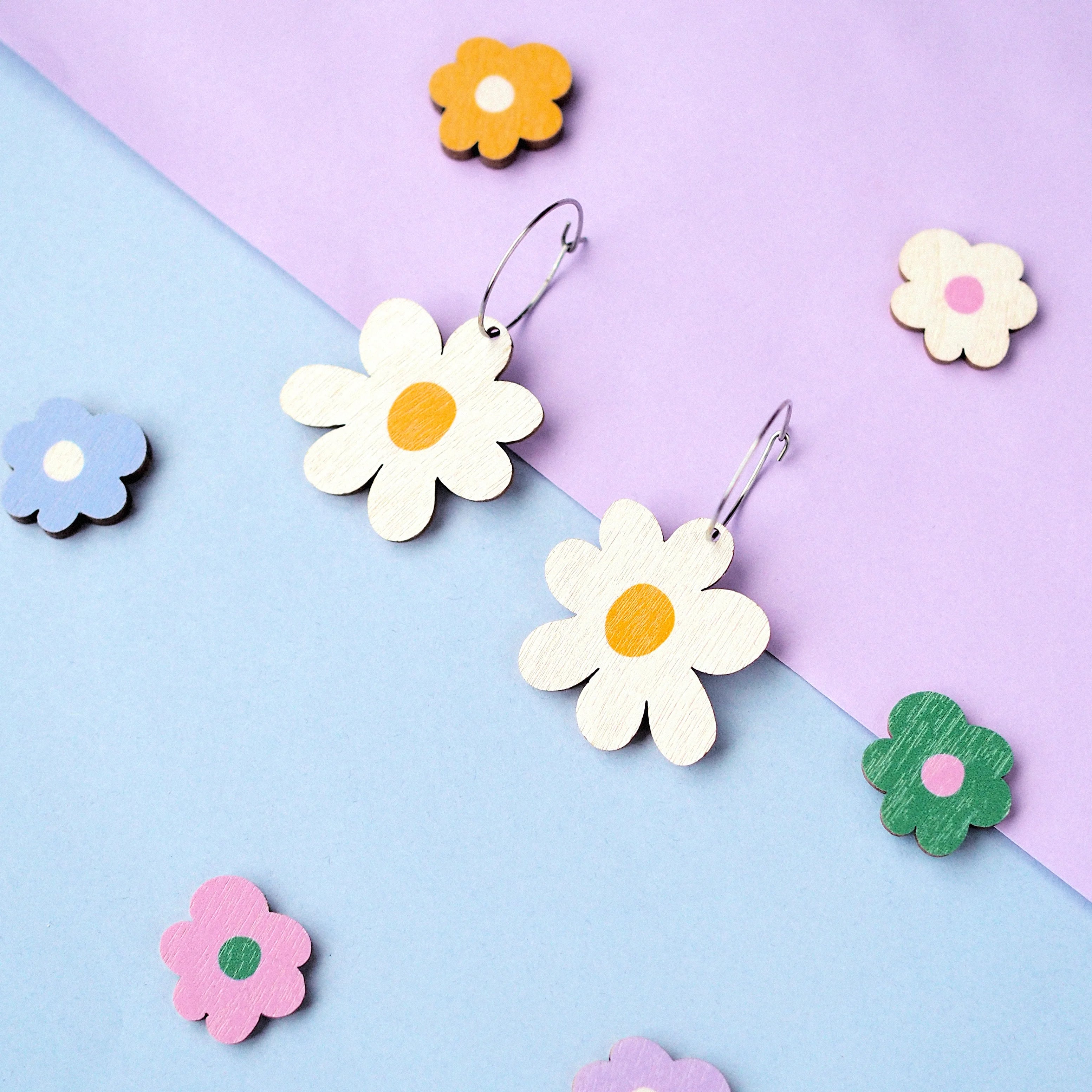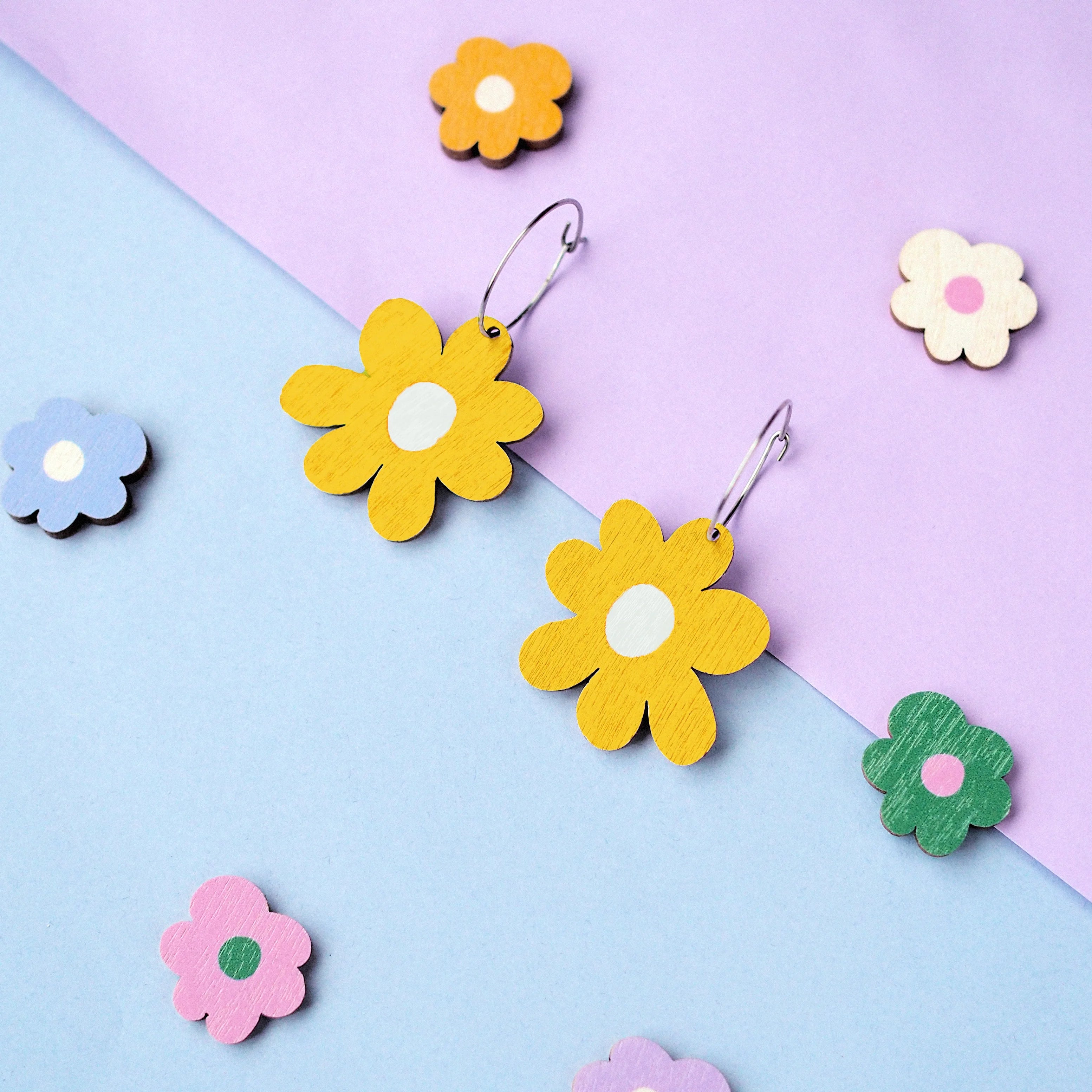 Mia Minervan kevyet koivuvaneriset Daisy -korvakorut on helposti yhdisteltävät suosikkikorvikset tuomaan asuun ripauksen kesäistä kukkaloistoa!