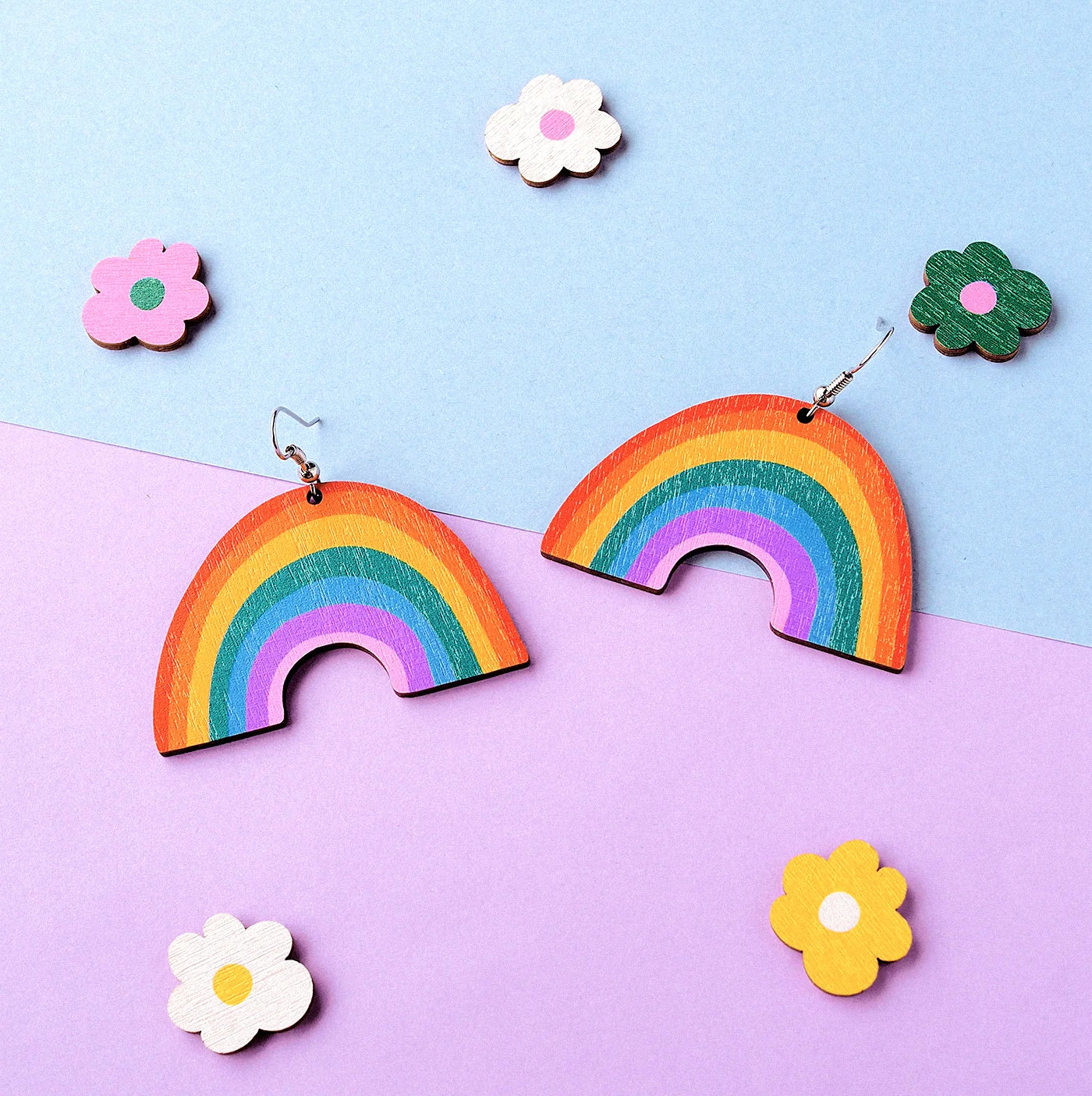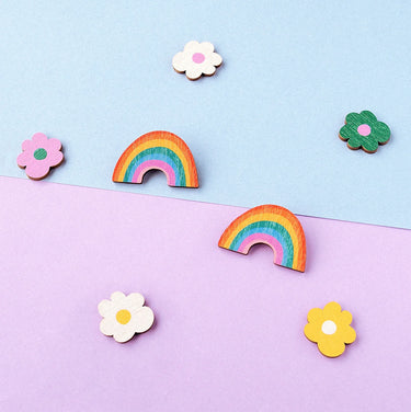 Mia Minerva - Sateenkaari -korvakorut koivuvanerista