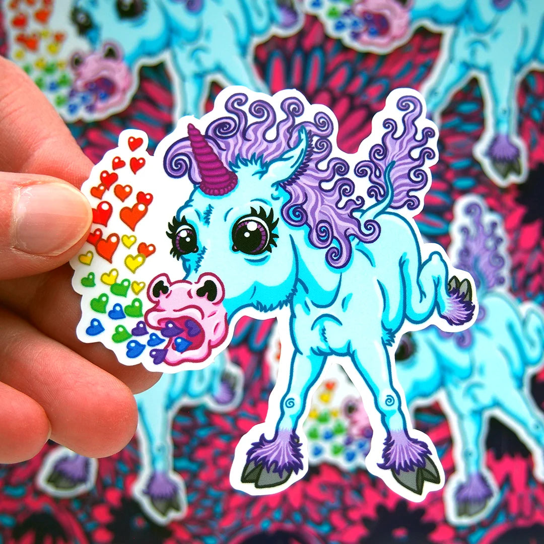 Multihearted Yawn yksisarvistarra on niin söpöä että pahaa tekee! Tältä uniikilta unikornilta pääsee pitkä sylky värikkäiden sydänten muodossa.