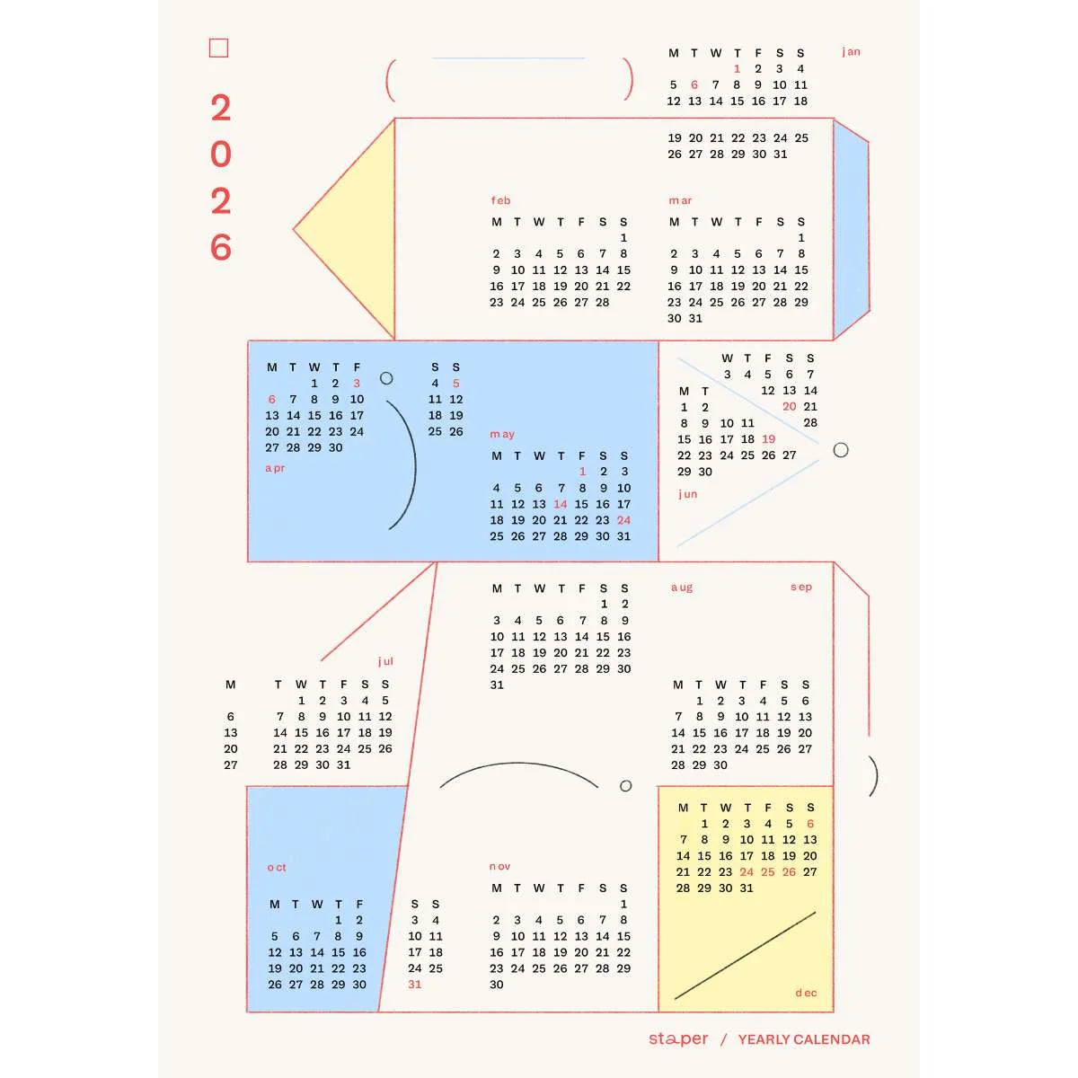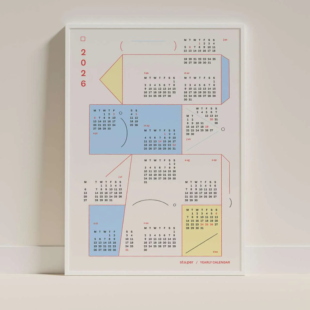 Staper Studion 2026 vuosikalenterijuliste on graafisen kaunis ja käytännöllinen lisä kodin tai toimiston seinälle!