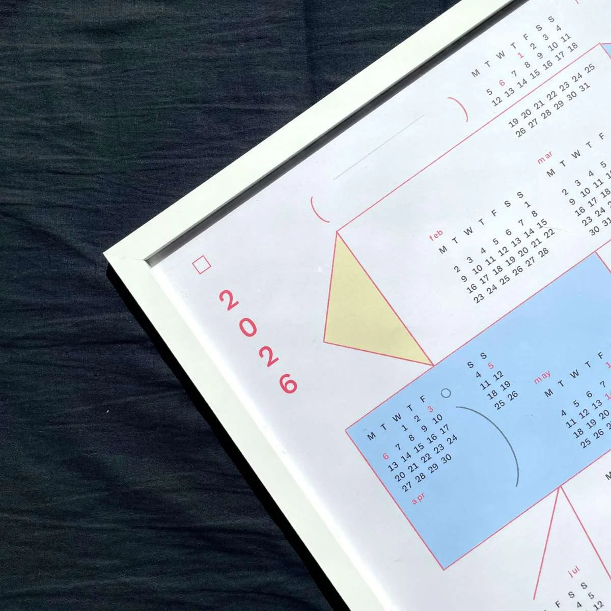 Juliste toimii sekä sisustuselementtinä että arjen apuvälineenä – se näyttää koko vuoden yhdellä silmäyksellä ja sopii täydellisesti esimerkiksi keittiöön, toimistoon tai lastenhuoneeseen. Kehystä se tauluksi seinälle tai kiinnitä magneetilla jääkaapin oveen – molemmilla tavoilla se tuo iloa ja selkeyttä päivittäiseen arkeen.