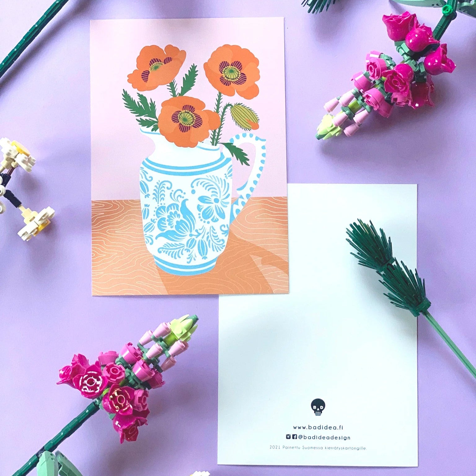 Niihin elämän hetkiin, kun kaipailet joko ihan vain kaunista kotimaista herkkukorttia tai sitä asteen hauskempaa korttia, joko kehystettynä kastelemaan oman kodin huumorinkukkaa tai annettavaksi sille ystävälle tai läheiselle, jonka kohdalla mikään ei jää ainakaan huumorintajusta kiinni!