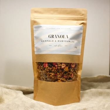Pistaasbaken kotileipomon granolaa voit nauttia esimerkiksi viilin tai jugurtin kanssa, tai napostella ihan vain suoraan pussista, sen verran herkullista se on!