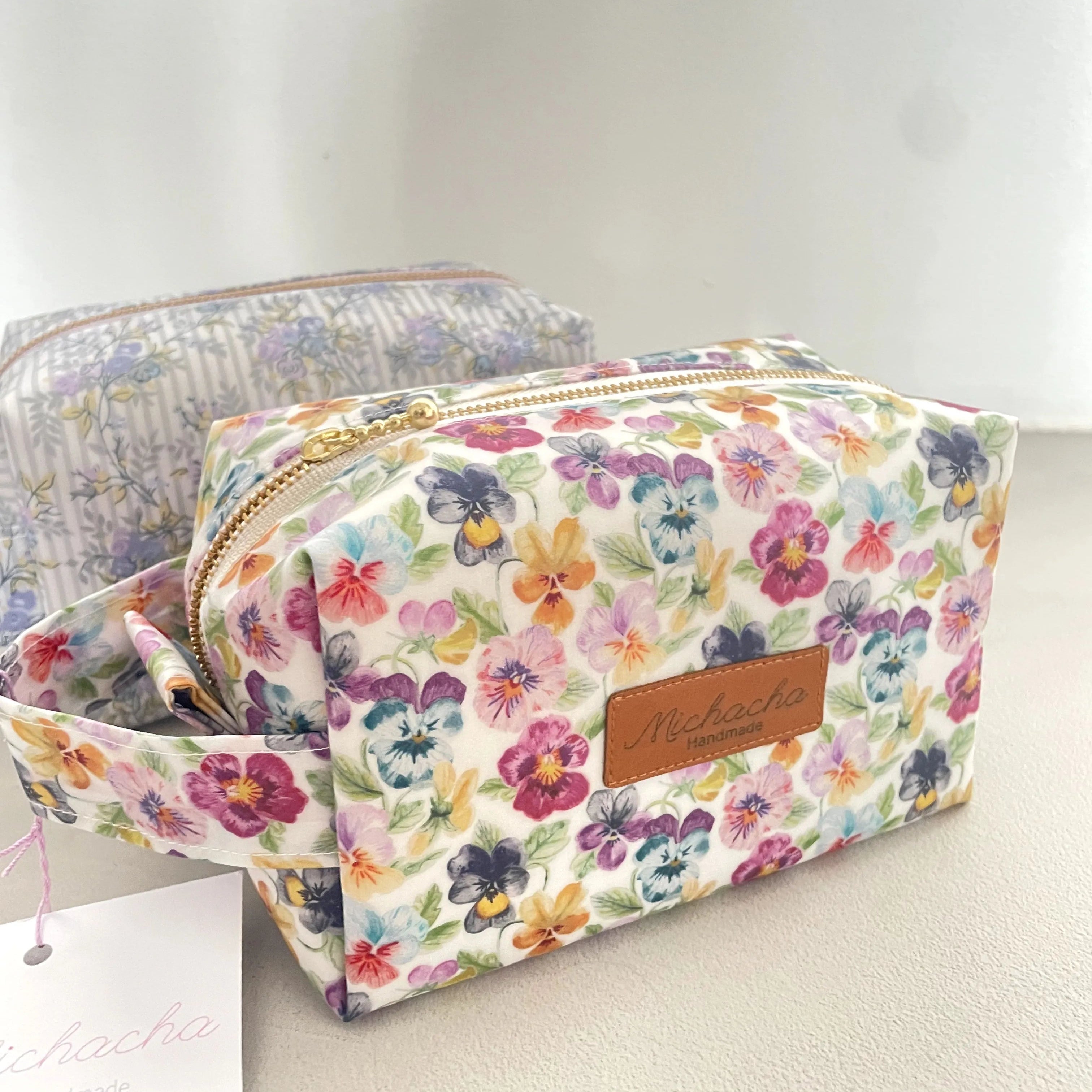 Michachan monikäyttöiset pussukat on valmistettu käsin Espoossa. Kauniiseen kukkakuosiseen pussukkaan pakkaat näppärästi mukaan matkakokoiset saniteettitarvikkeet ja päivän meikit. Suloinen pussukka on oiva lahjaidea myös aikuiselle ta lapselle, joka voi säilyttää pussukassa salaisia aarteitaan.