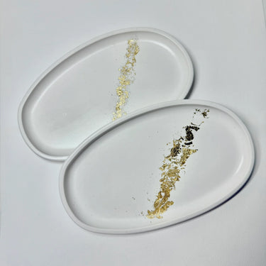 Tarina Paperilla epäsymmetrinen Soikio -tarjotin on näyttävä ja käytännöllinen alusta pienille esineille, kuten koruille, avaimille ja tuoksukynttilöille. Sen orgaaninen muoto ja elävä kuosi tuovat sisustukseen pehmeyttä ja käsintehdyn esineen lämpöä. Kokonaisuuden viimeistelee kaunis kultakoristelu, joka tuo ilmeeseen pehmeää ylellisyyttä!