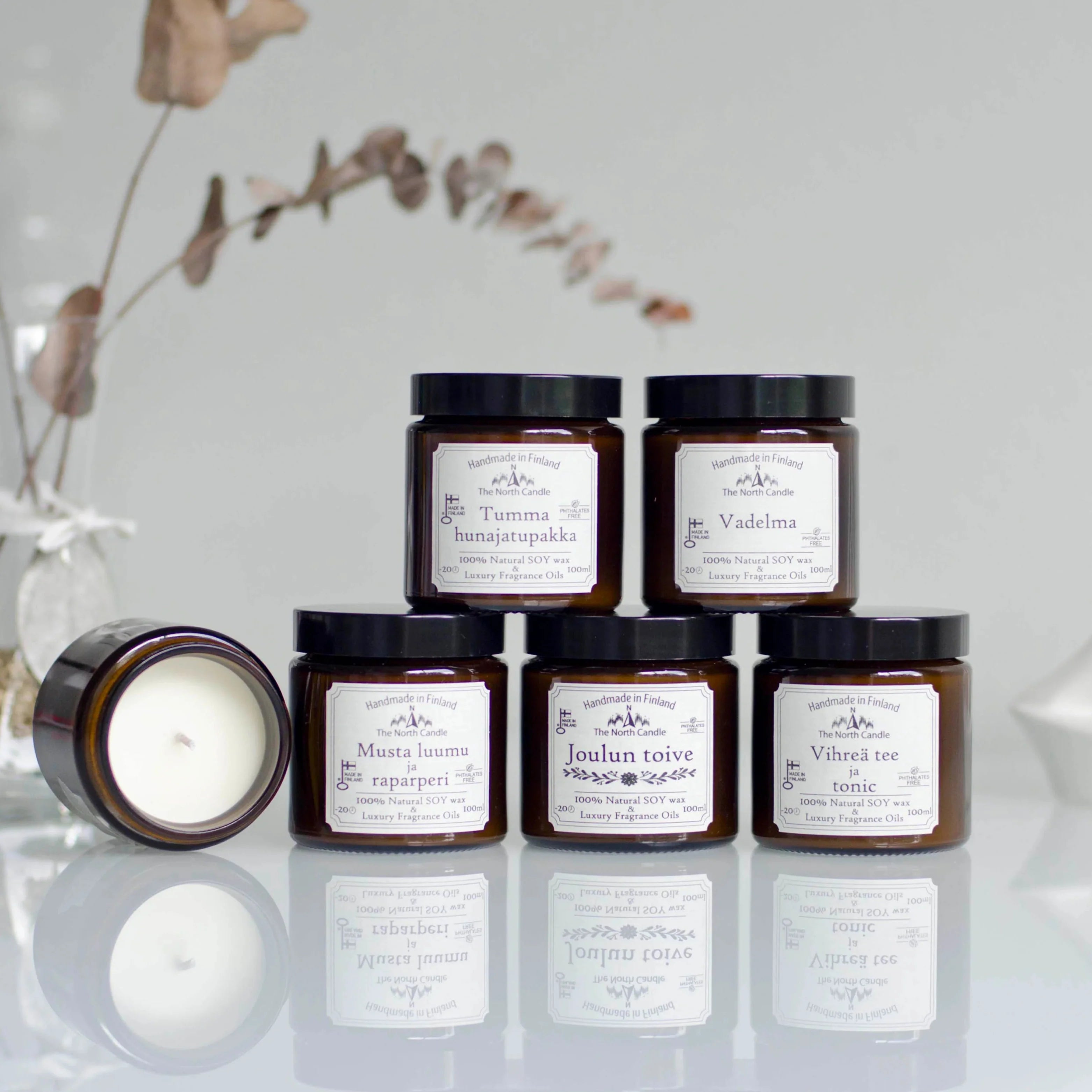 The North Candle on Suomalainen brändi, jonka kauniit astiakynttilät valmistetaan käsin rakkaudella ja pienimmätkin yksityiskohdat huomioiden. The North Candle:n kynttilät täyttävät talosi lämmöllä ja viihtyisällä ilmapiirillä, jota pohjoisen ankarassa ilmastossamme niin tarvitaan. Kynttilätuotannossa käytetään 100 % luonnollista soijavahaa ja korkealaatuisia tuoksuöljyjä.