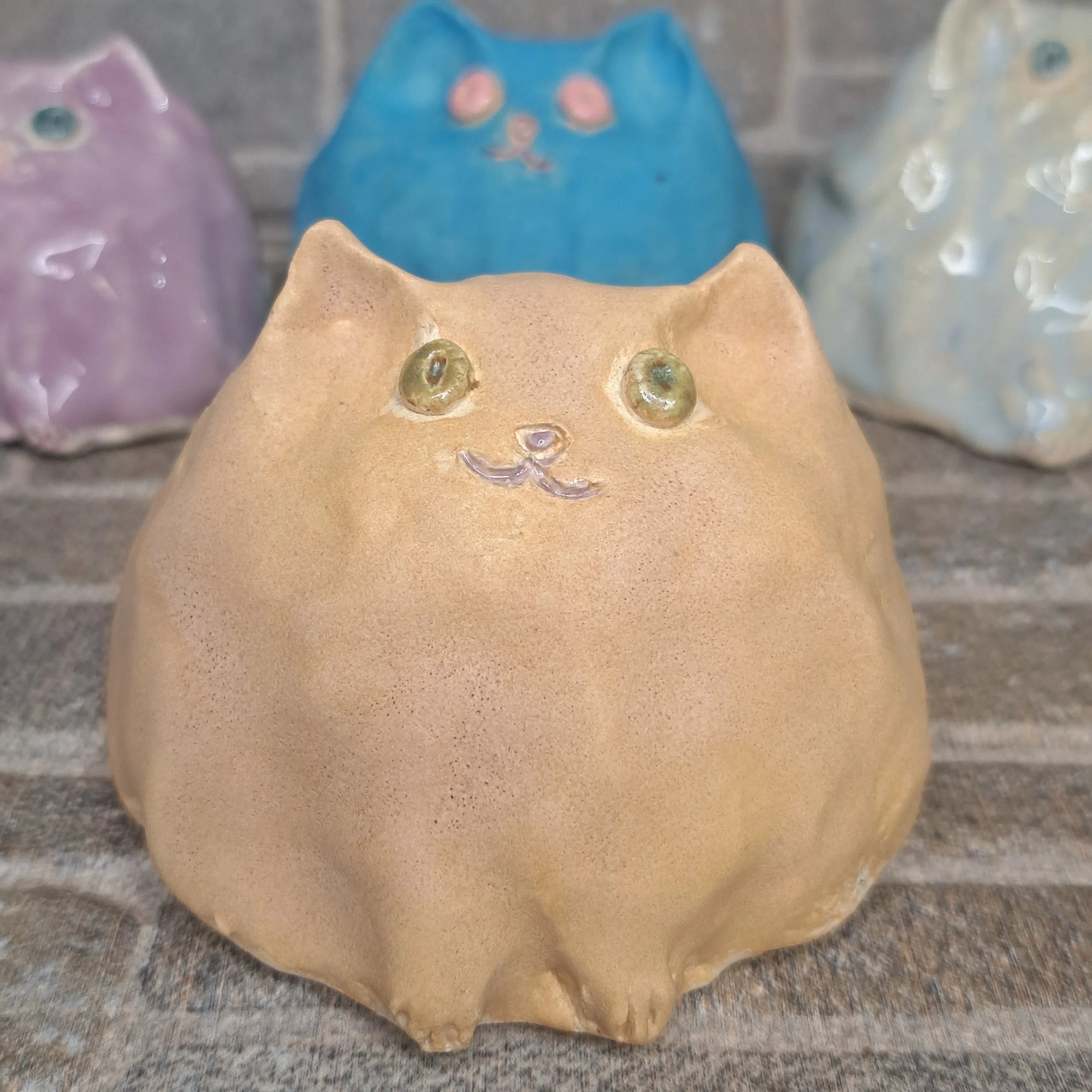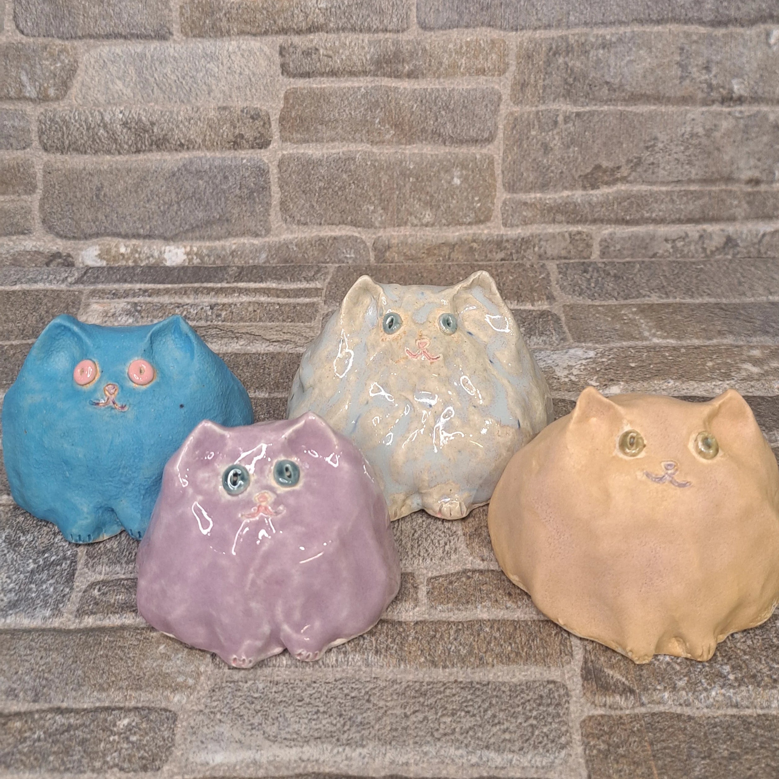 Korkeapolttoinen keramiikka tekee kissoista pitkäikäisiä ja laadukkaita, ja niiden eläväinen värimaailma piristää hyllyä, työpöytää tai lahjapakettia kertaheitolla. Ihana lahja kenelle tahansa kissaihmiselle tai sisustajalle, joka arvostaa käsityötä ja pieniä ilon hetkiä.