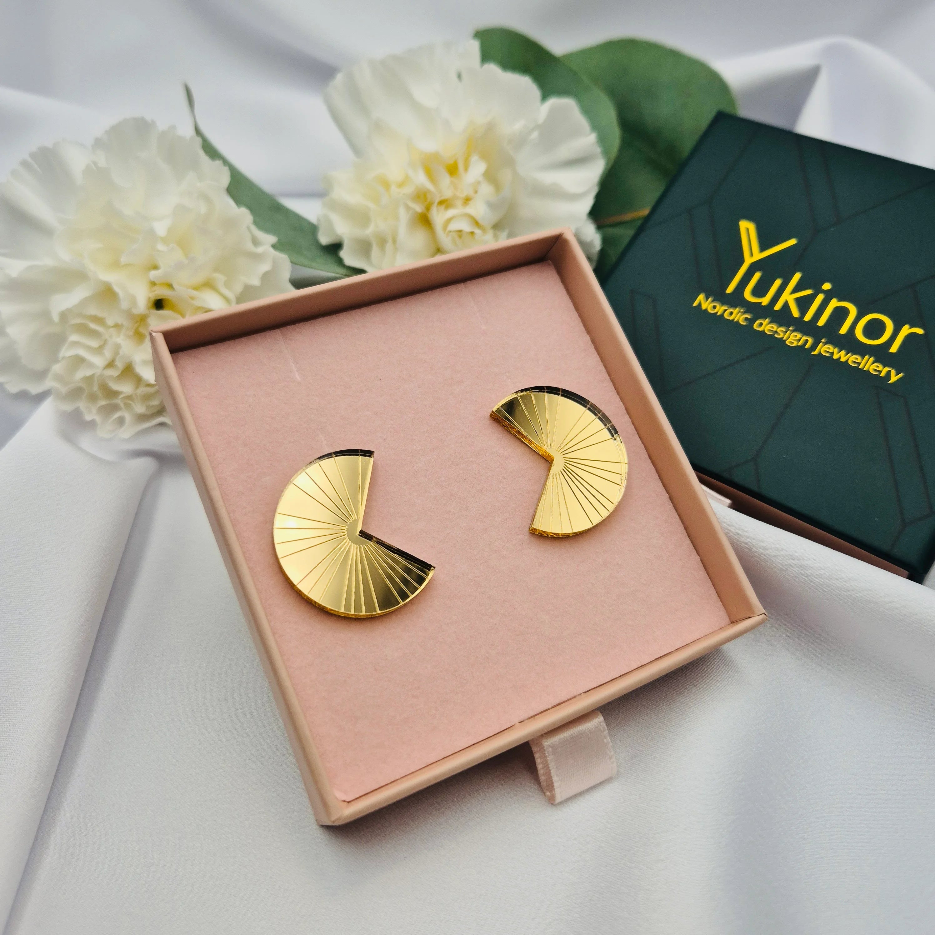 Yukinorin näyttävät, mutta kevyet Kata -nappikorvakorut on kaunis yhdistelmä peiliakryyliä ja graafista muotoilua!