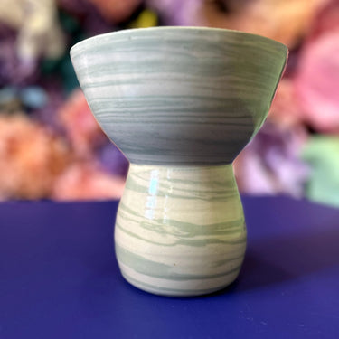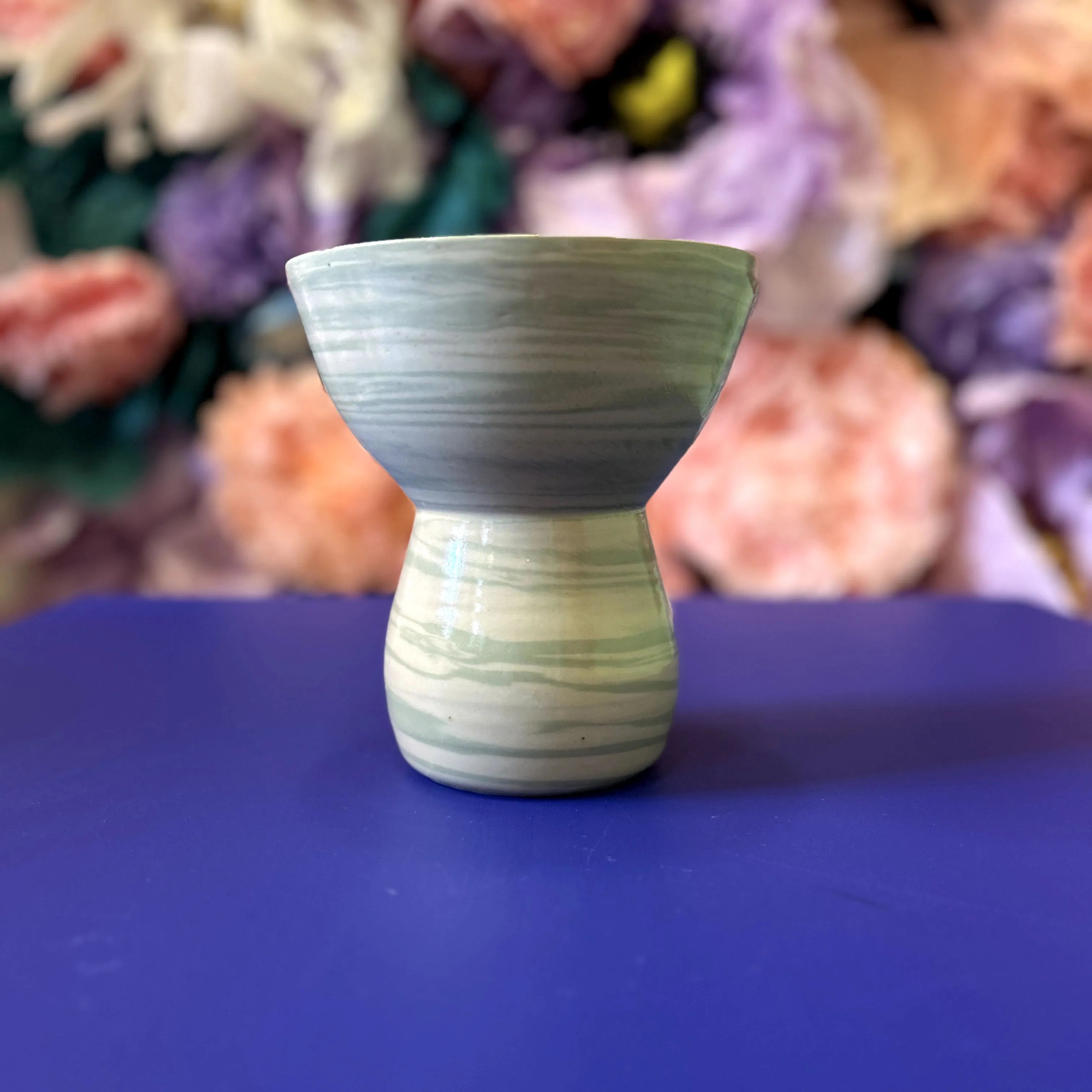 Muoto on samaan aikaan moderni ja ajaton: kapea alaosa tuo ryhtiä, kun taas leveä yläosa antaa kukille tilaa levittäytyä kauniisti. Jokainen maljakko on käsin valmistettu, joten sävyjen liike ja pinnan elävä ilme tekevät jokaisesta kappaleesta uniikin.