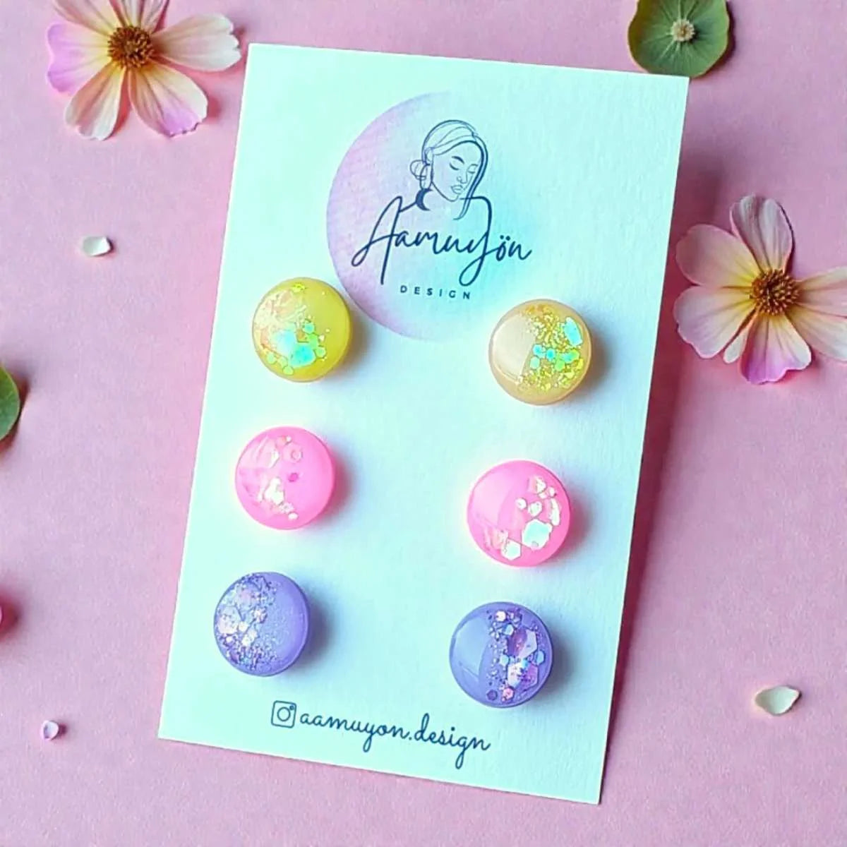 Aamuyön Designin kaunis glitternappisetti tarjoaa oikeat nappikorvikset kaikkiin tilanteisiin ja tilaisuuksiin!