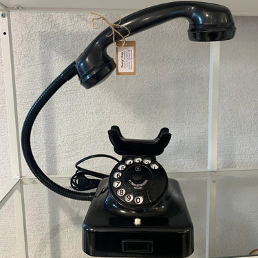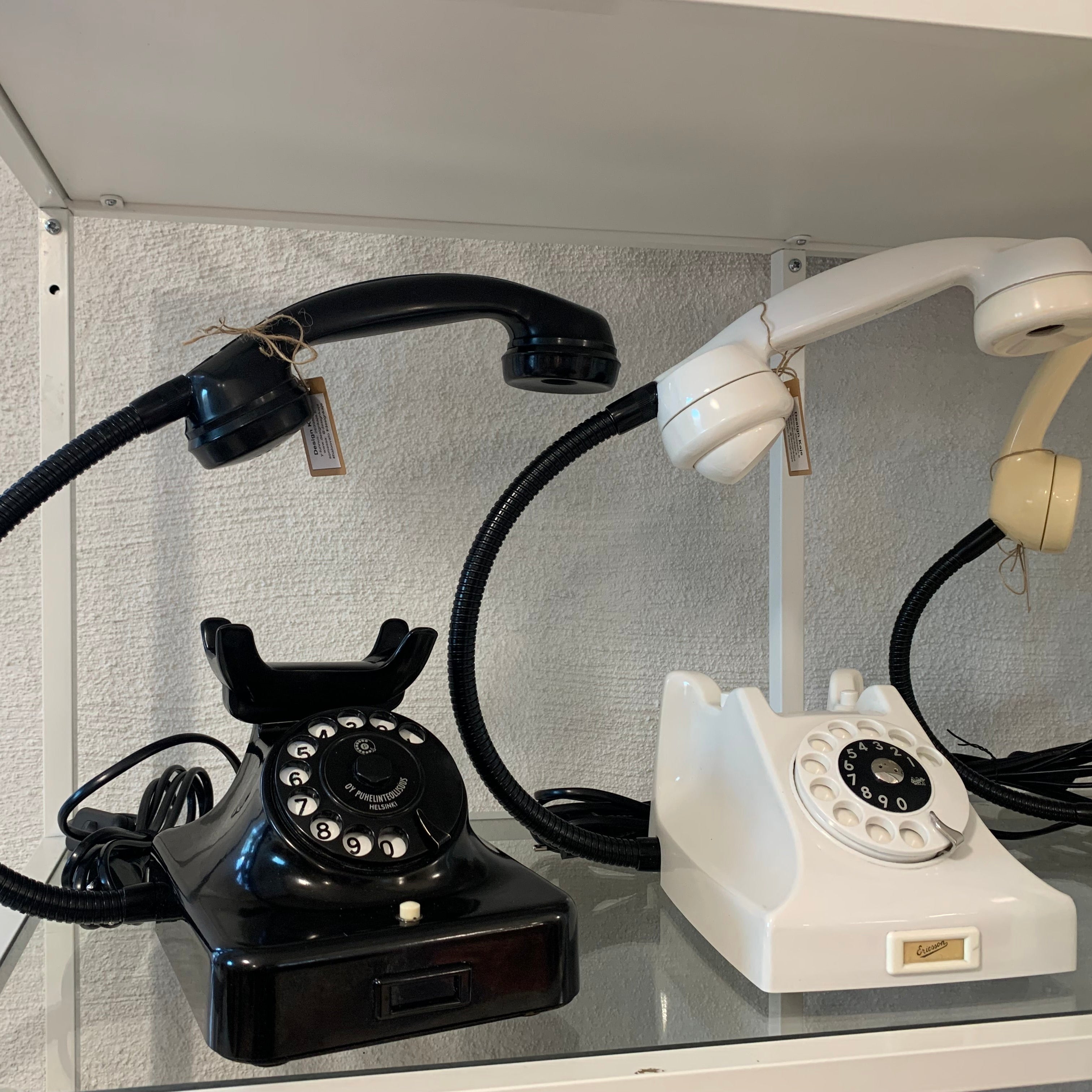 Tuo ajatonta vintage eleganssia sisustukseesi Design Kajeen upealla pöytävalaisimella, joka on valmistettu 40-luvun bakeliittipuhelimesta. Valaisimessa on kunnioitettu puhelimen alkuperäistä kaunista muotoilua! Luurista löytyy pitkäikäinen LED-lamppu, joka tarjoaa lämpimän valkoisen valon. Liikuteltava varsi mahdollistaa valon suuntaamisen tarkasti tarpeen mukaan, tehden tästä valaisimesta täydellisen luku- ja työpöydälle tai tunnelmavaloksi keskustelua herättämään!