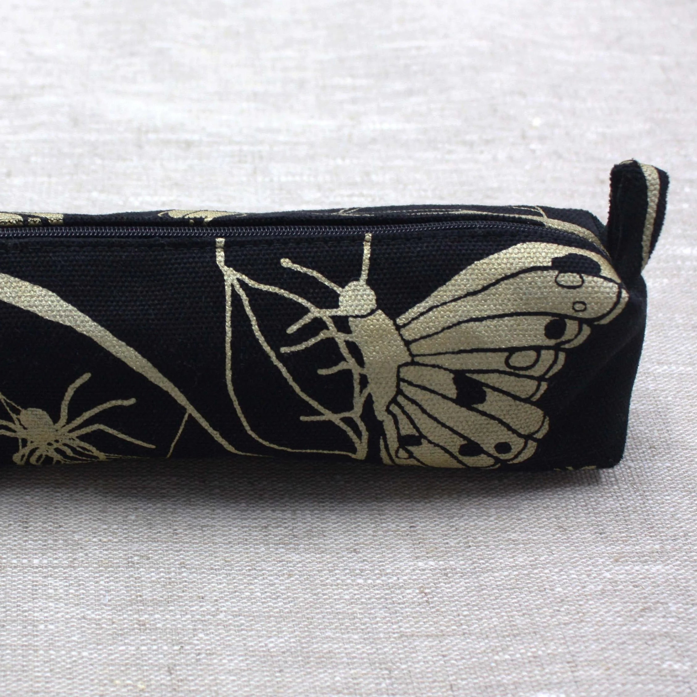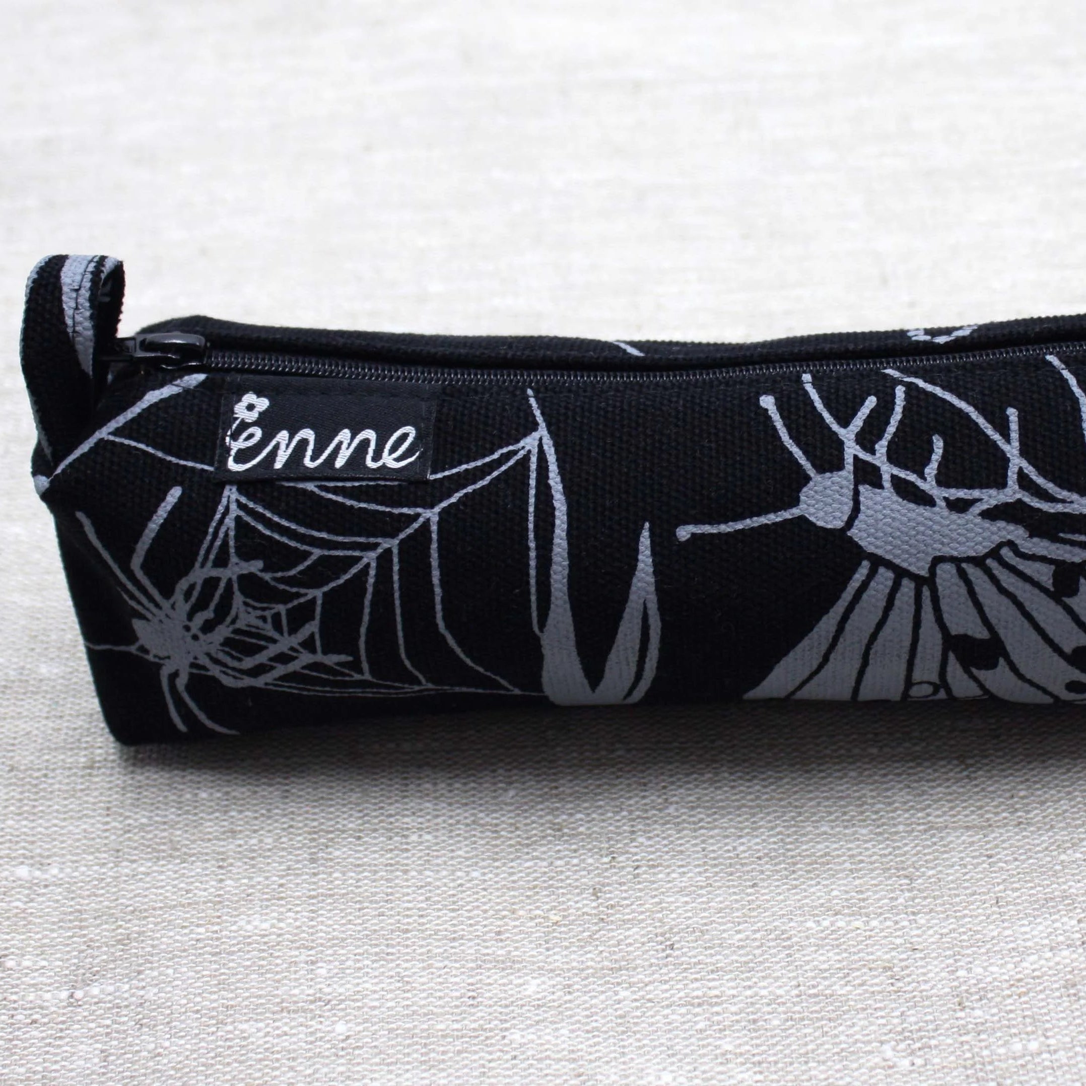 Enne Designin Heinikossa-penaali on tyylikäs ja käytännöllinen säilytysratkaisu arkeen. Kaunis, käsin painettu kuosi mustalla luomupuuvillalla tuo penaaliin luonnonläheistä tunnelmaa ja ajattoman ilmeen.