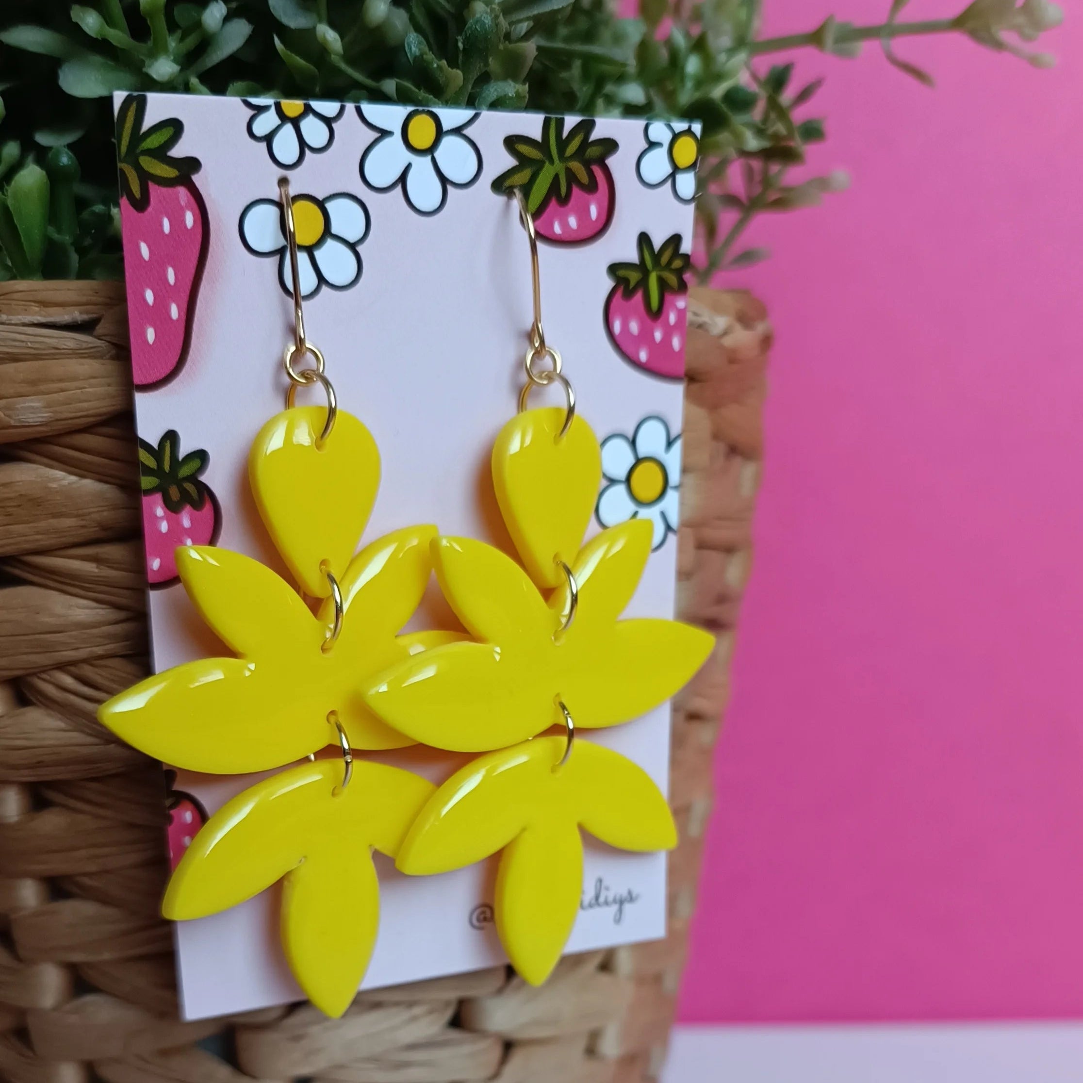 Korvakorut valmistetaan käsin polymeerimassasta, mikä tekee niistä kevyet ja miellyttävät käyttää koko päivän. Pinta on viimeistelty UV-hartsilla, joka tekee koruihin viimeistellyn, kiiltävän pinnan! Koukut on kullattua ruostumatonta terästä ja mukana tulevat silikoninapit lisäävät käyttömukavuutta ja varmistavat, että korvakorut pysyvät hyvin paikoillaan.