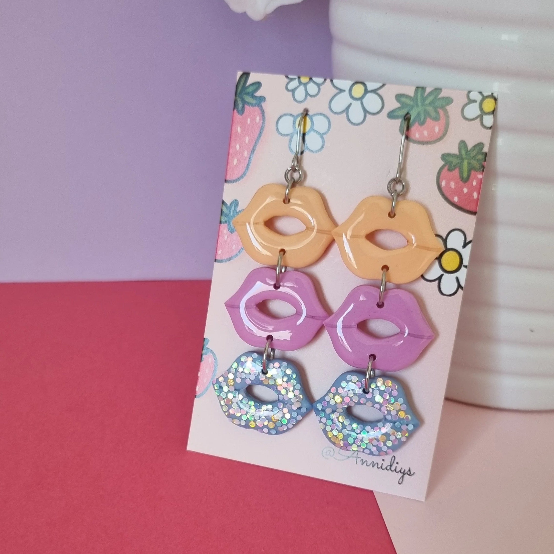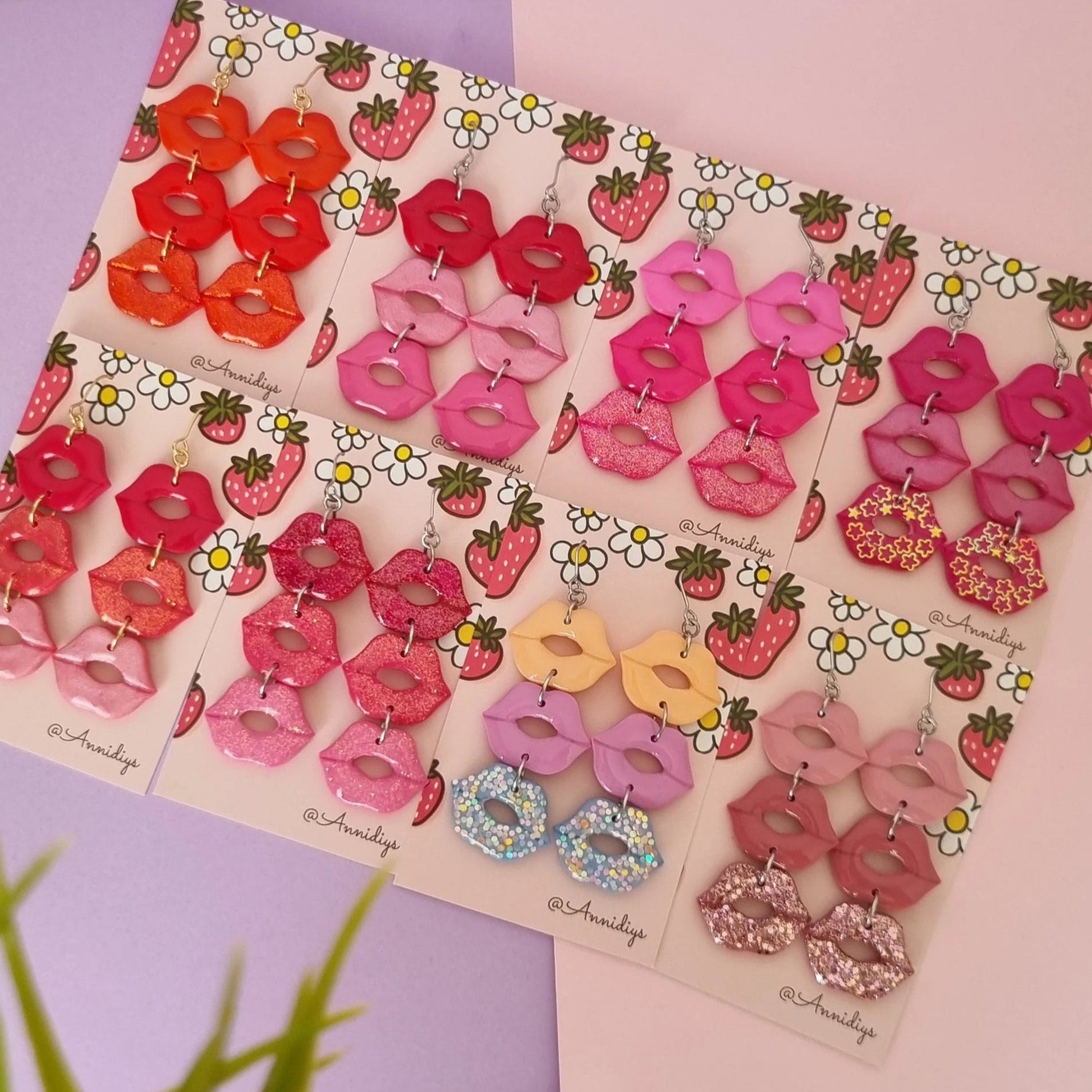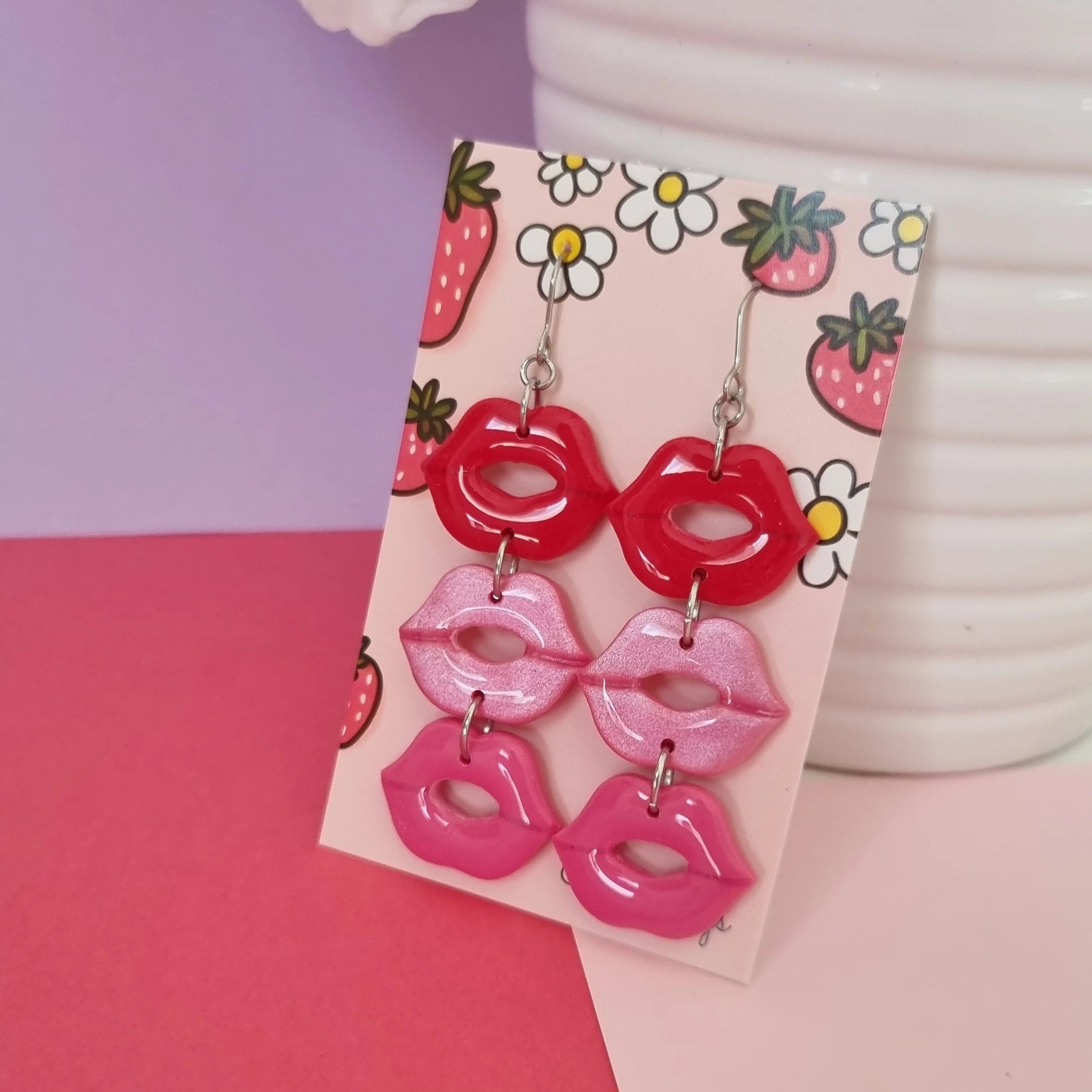 Leikkisän kauniit, näyttävät, mutta kevyet Huulet Trio -korvakorut on ihana lahjaidea itselle, mielitietylle tai ihan vain ystävälle - hänelle, joka merkitsee!