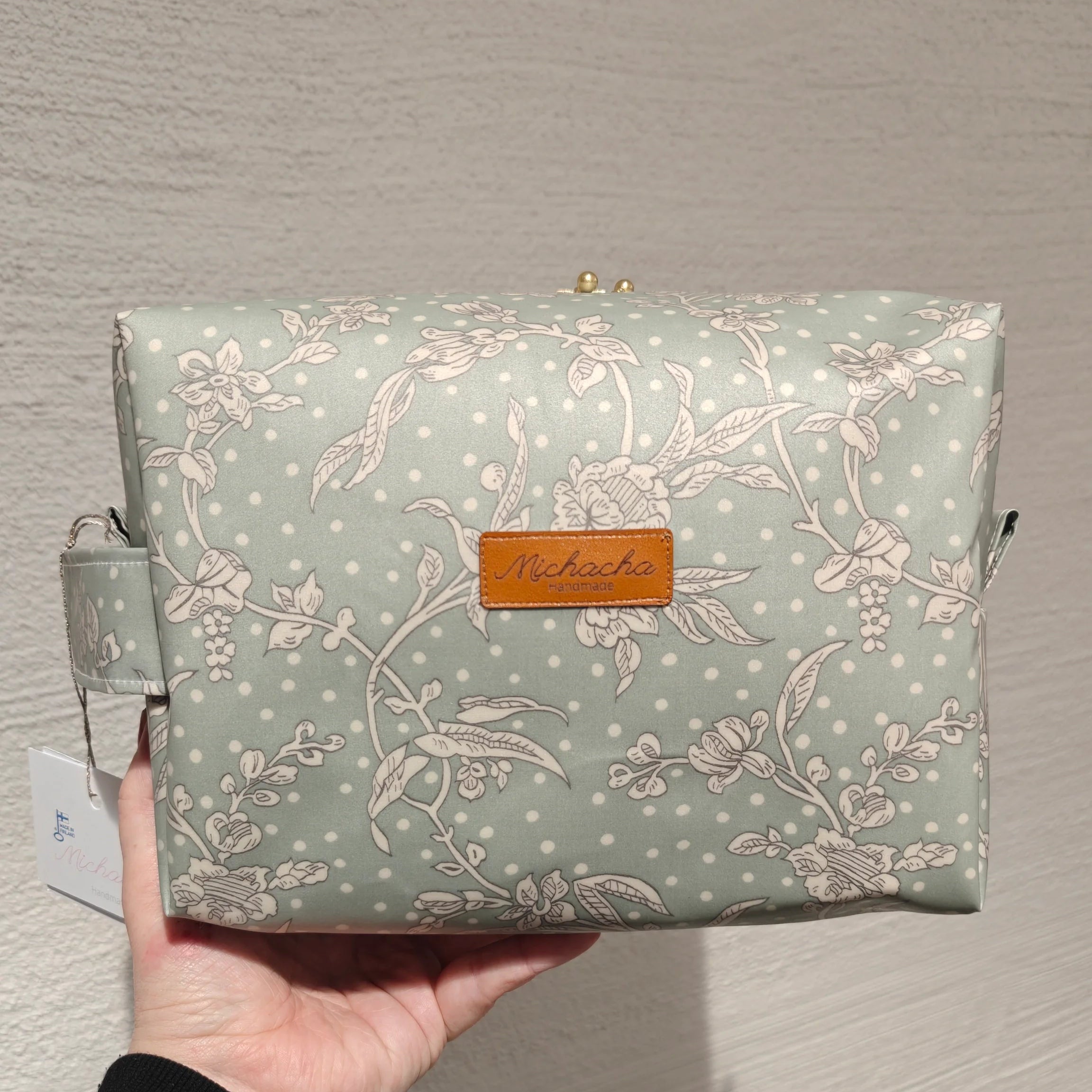 Michachan monikäyttöiset pussukat on valmistettu käsin laadukkaasta vedenkestävästä ja kuosinsa kauniisti säilyttävästä Liberty of London -kankaasta Espoossa. Kauniiseen kukkakuosiseen pussukkaan pakkaat näppärästi mukaan kaikki pidemmänkin reissun saniteettitarvikkeet ja meikit. Suloinen pussukka on oiva lahjaidea aikuiselle tai lapselle.