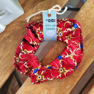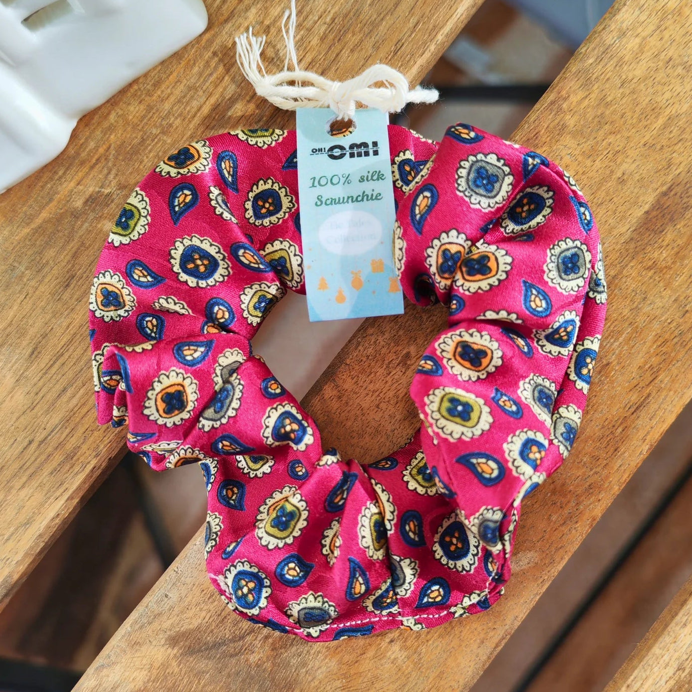 OhOMIStudion hellävaraisen tyylikäs silkkiscrunchie on valmistettu käsin vanhasta silkkisolmiosta - valitse kahdesta kokovaihtoehdosta!
