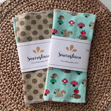Myydään 2 kpl pakkauksissa. Paketissa aina 2 erilaista siivousliinaa.