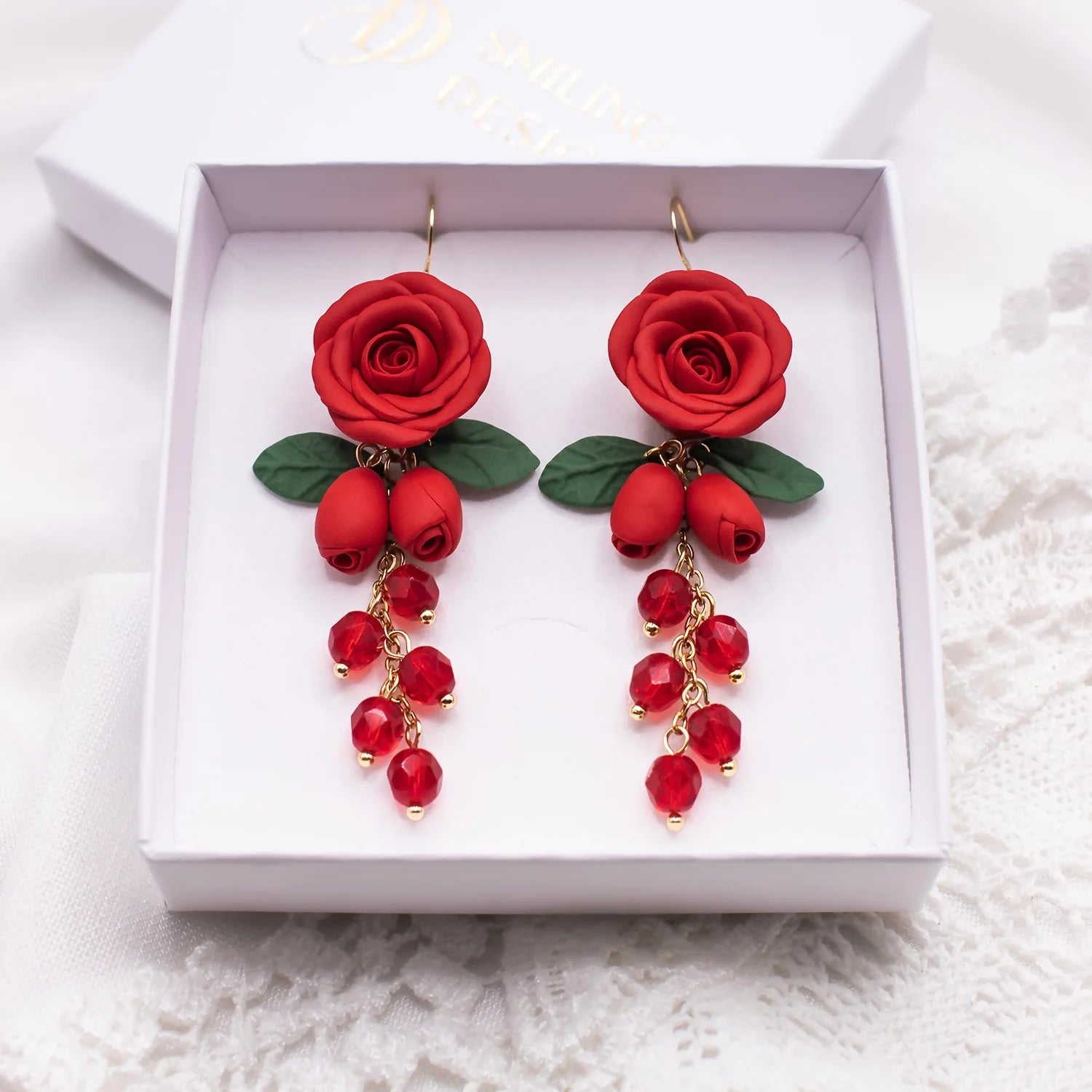 Smiling Designin Melody-korvakorut ovat kauniin romanttiset kukkakorvakorut, joissa ruusun muoto kohtaa kevyen säihkeen. Jokainen kukka on muotoiltu käsityönä yksi terälehti kerrallaan, mikä tekee jokaisesta parista ainutlaatuisen ja elävän näköisen.