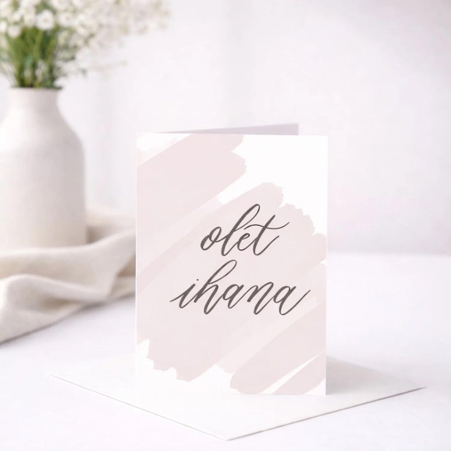 Muista päivänsankaria ja lähetä tervehdys, joka tuntuu aidosti ajatellulta. Tarina Paperilla -avattavat postikortit ovat suomalaisen käsityön helmiä – jokainen kortti on Tarina Paperilla -tyyliin ominaista, rauhallista kalligrafiaa ja huolella suunniteltua visuaalisuutta.