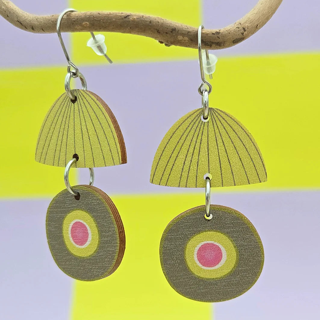 Tyypit Studion koivuvaneriset Sanelma -korvakorut on unelman kevyet raikkaan vihreät kukkaihanuudet arkeen ja leikkisään juhlaan!