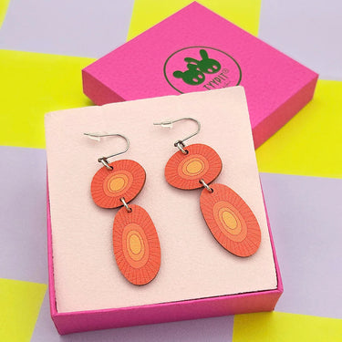 Tyypit Studion koivuvaneriset Signe -korvakorut on kevyet kukkaihanuudet oranssin sävyissä!