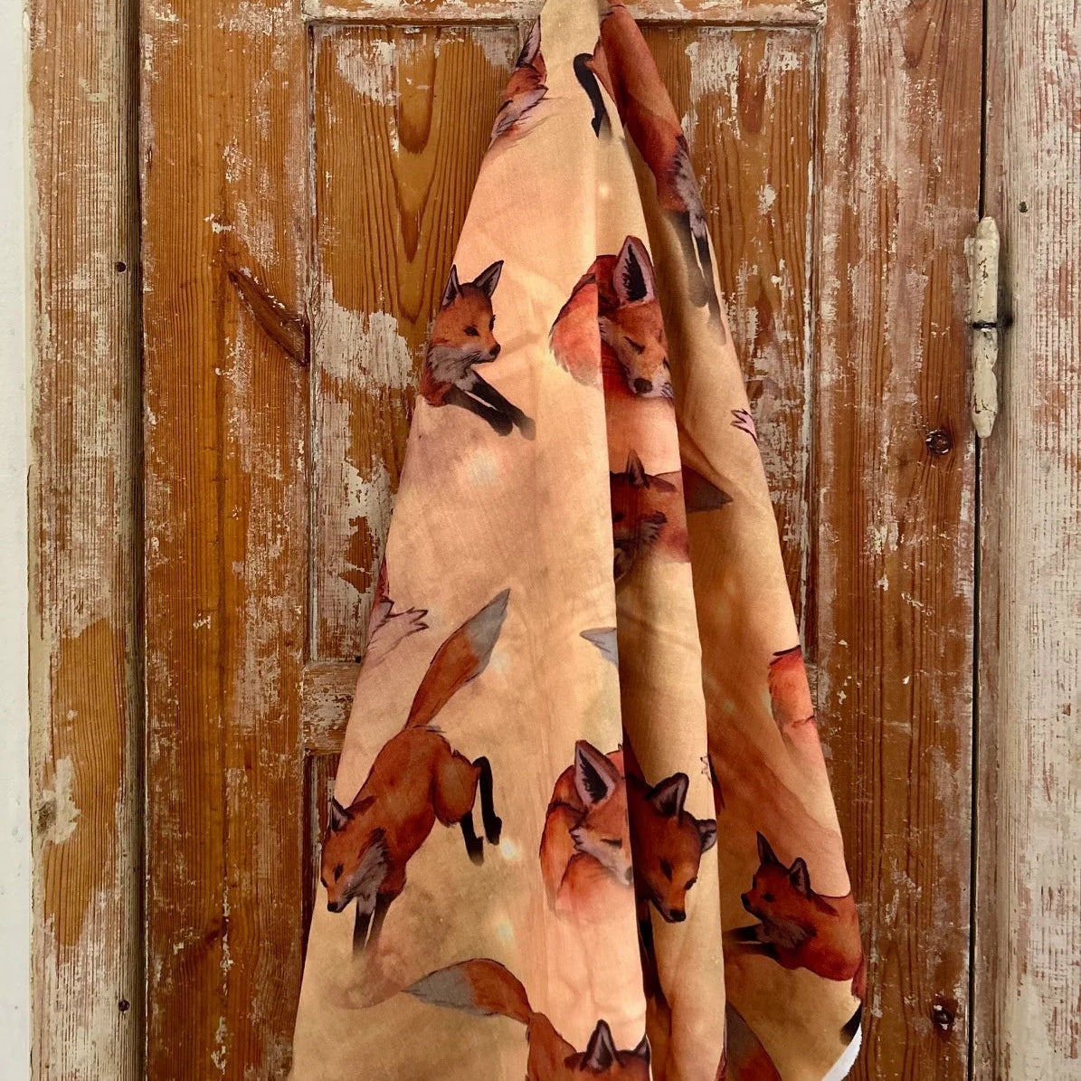 Liina on malliltaan neliön muotoinen, leveys vähintään 65 cm (vaihtelee hieman printin mukaan). Saatavilla vain pieni erä kutakin kuosia – jokainen liina on oma yksilönsä!